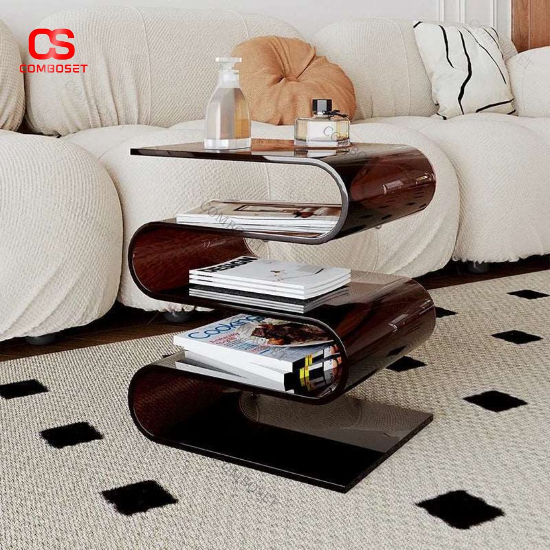 Tổng thể, bàn dáng sóng lượn ba tầng không chỉ là một chiếc bàn tab thông thường mà còn là tuyên ngôn phong cách. Sự kết hợp giữa đường cong mềm mại, chất liệu acrylic trong suốt và cấu trúc ba tầng tiện ích đã tạo nên một thiết kế hài hòa giữa nghệ thuật và công năng.