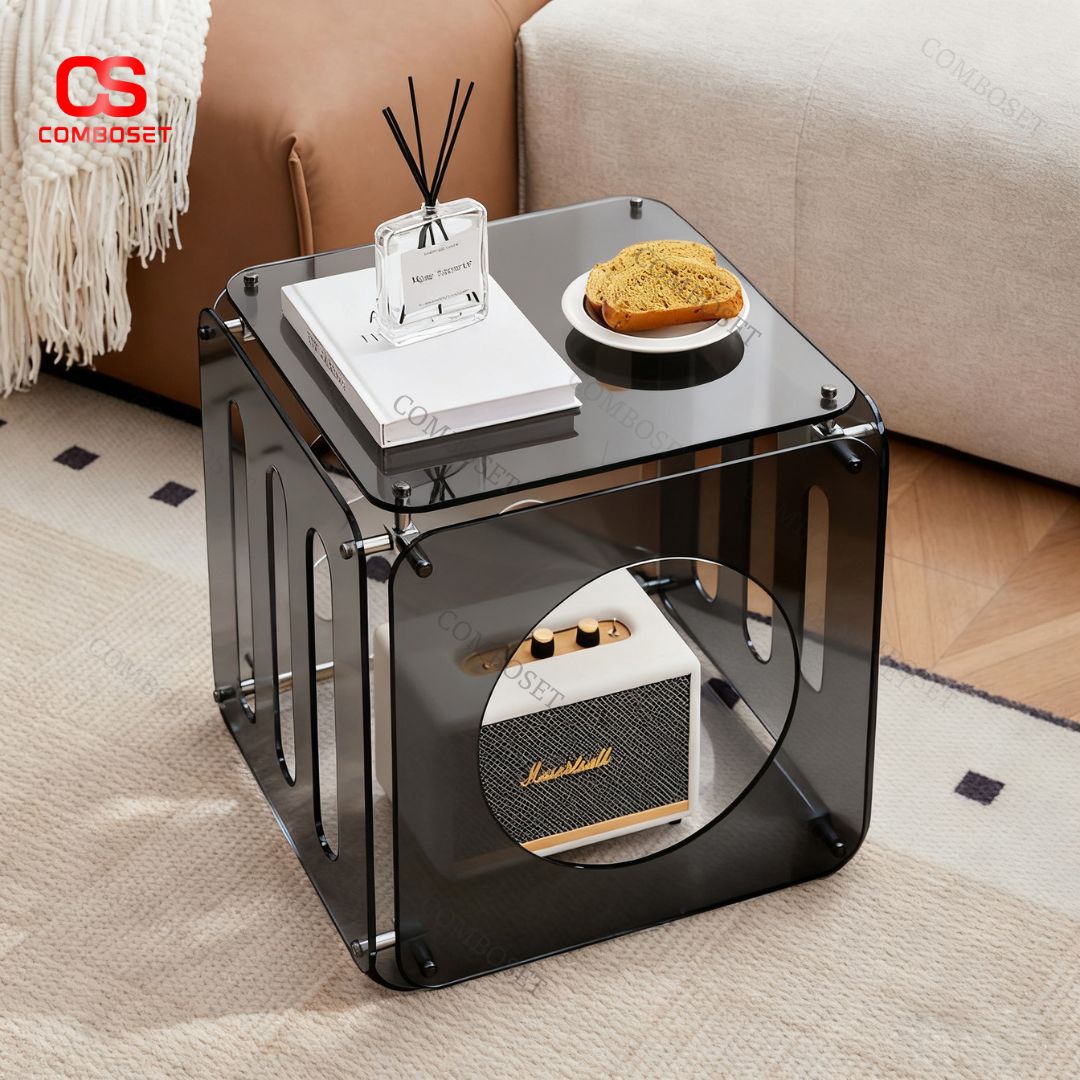 > Bàn Phụ Acrylic Trong Suốt Dáng Vuông Bo Tròn – Nhỏ Gọn, Hiện Đại Cho Mọi Không Gian