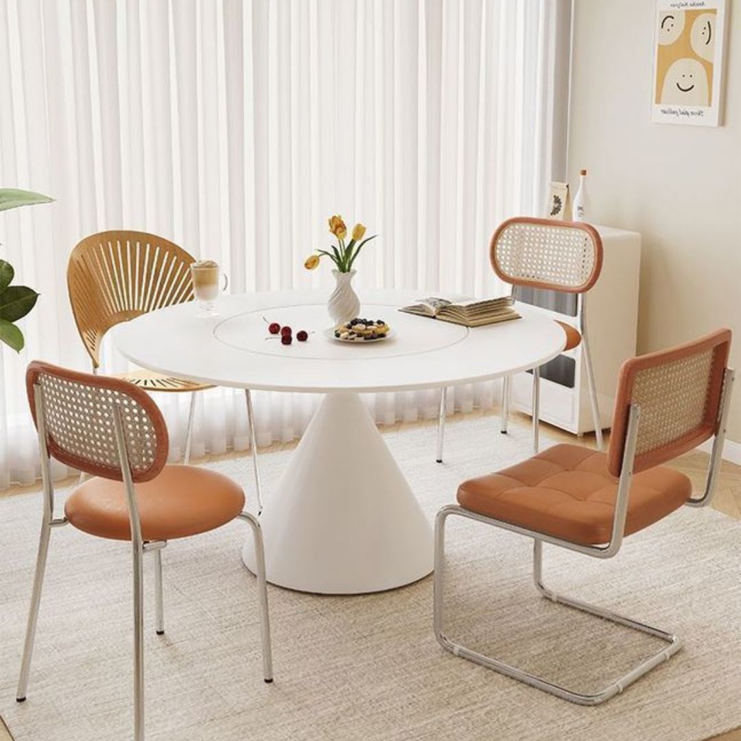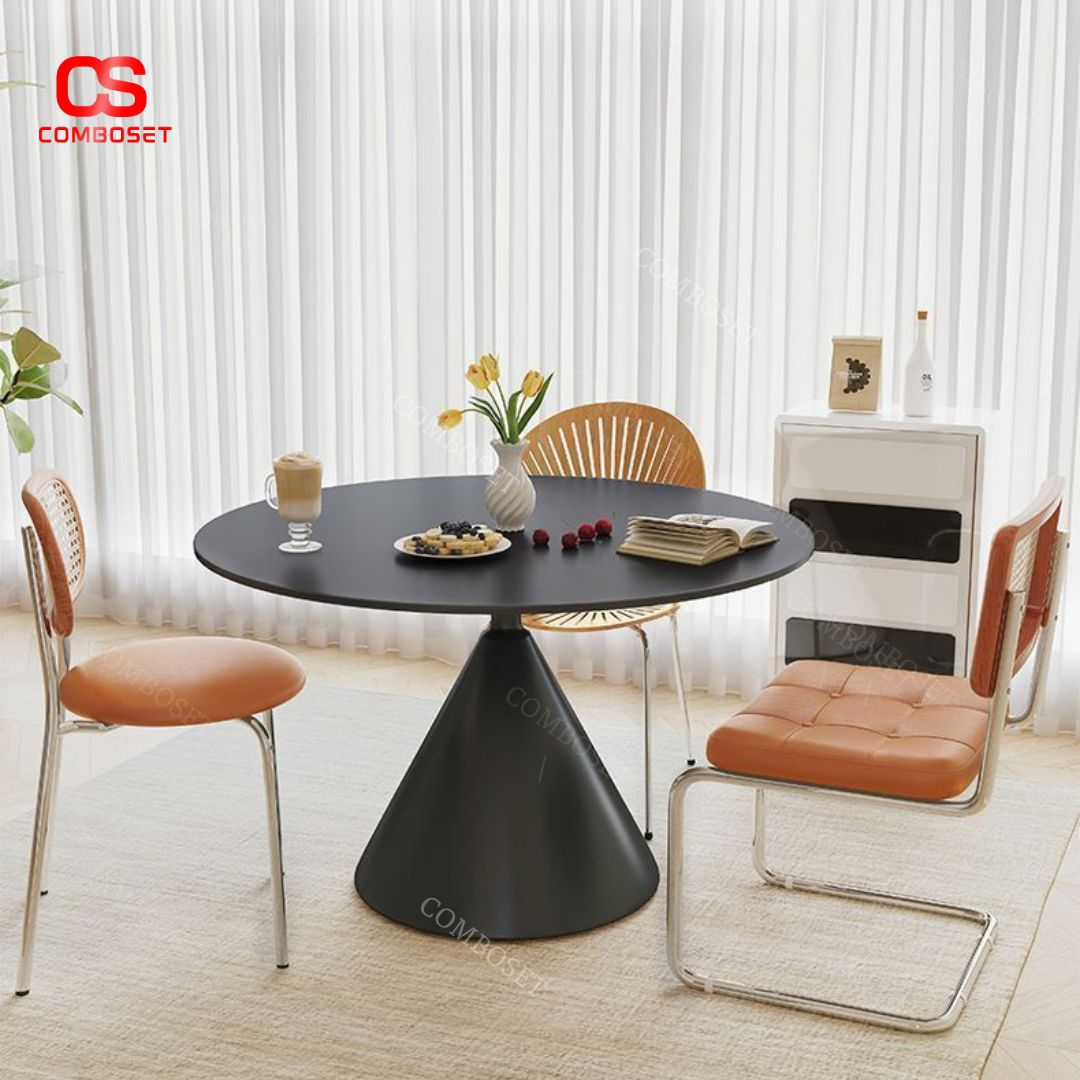 > Bàn Tròn Đá Kiểu Ý, Bàn Ăn Với Chân Ghế Hình Nón