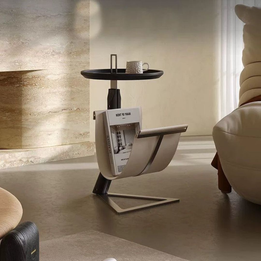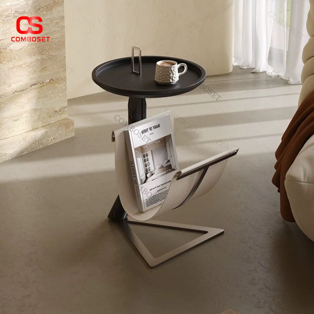 > Bàn Yên Ngựa Mặt Tròn Kèm Giá Treo Tạp Chí – Gọn Gàng Và Tiện Lợi