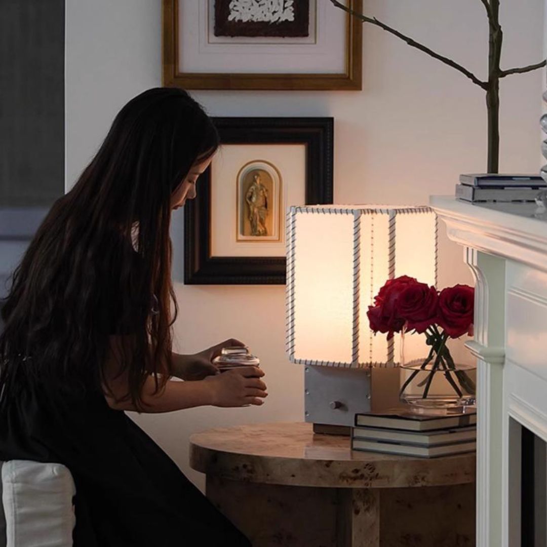 Trái ngược với vẻ mềm mại của chụp giấy, phần thân đèn được làm từ kim loại nguyên khối với bề mặt mờ nhám hiện đại. Thiết kế vuông vức, chắc chắn giúp chiếc đèn trở thành một khối thống nhất, vững chãi và sang trọng. Chân đèn còn được kết hợp thêm đế gỗ mỏng bên dưới, tạo sự hòa trộn giữa kim loại và vật liệu tự nhiên – một phong cách thiết kế đang rất thịnh hành trong nội thất đương đại.