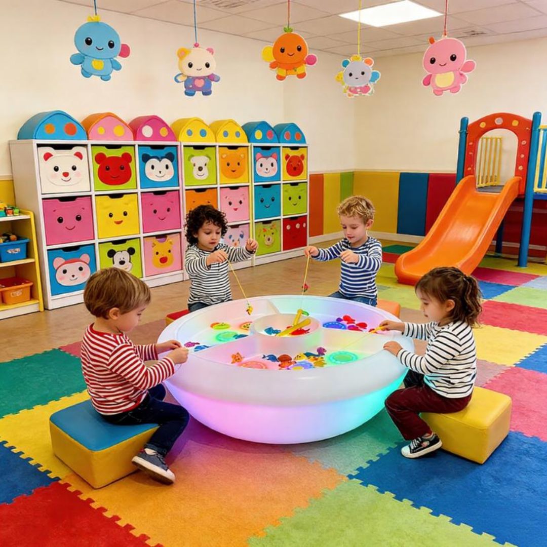 Khi được bố trí tại khu vực sinh hoạt chung, đèn bàn LED đổi màu góp phần tạo không gian thân thiện, vui tươi và kích thích sự tương tác giữa các bé. Sản phẩm vừa đóng vai trò chiếu sáng, vừa là yếu tố trang trí giúp không gian giáo dục trở nên gần gũi và hấp dẫn hơn.