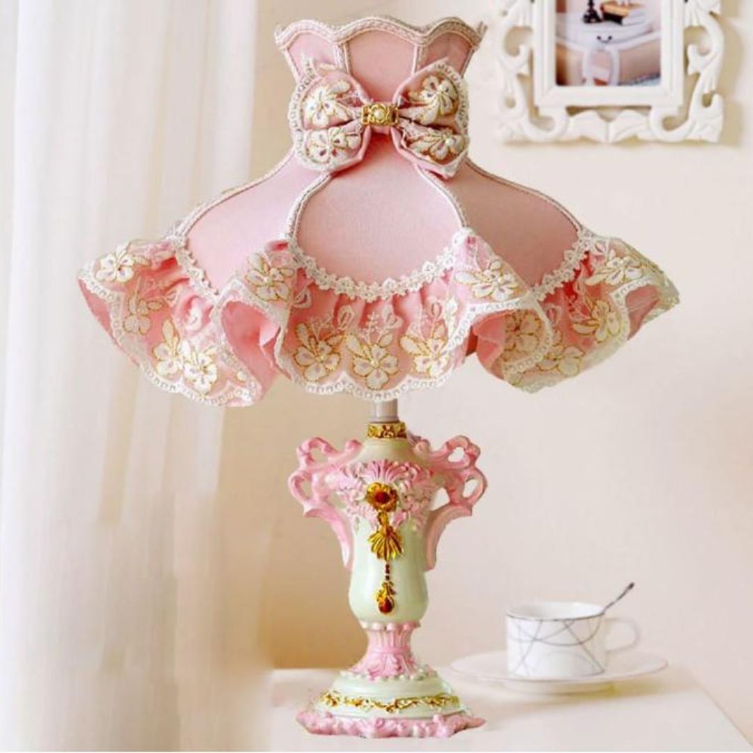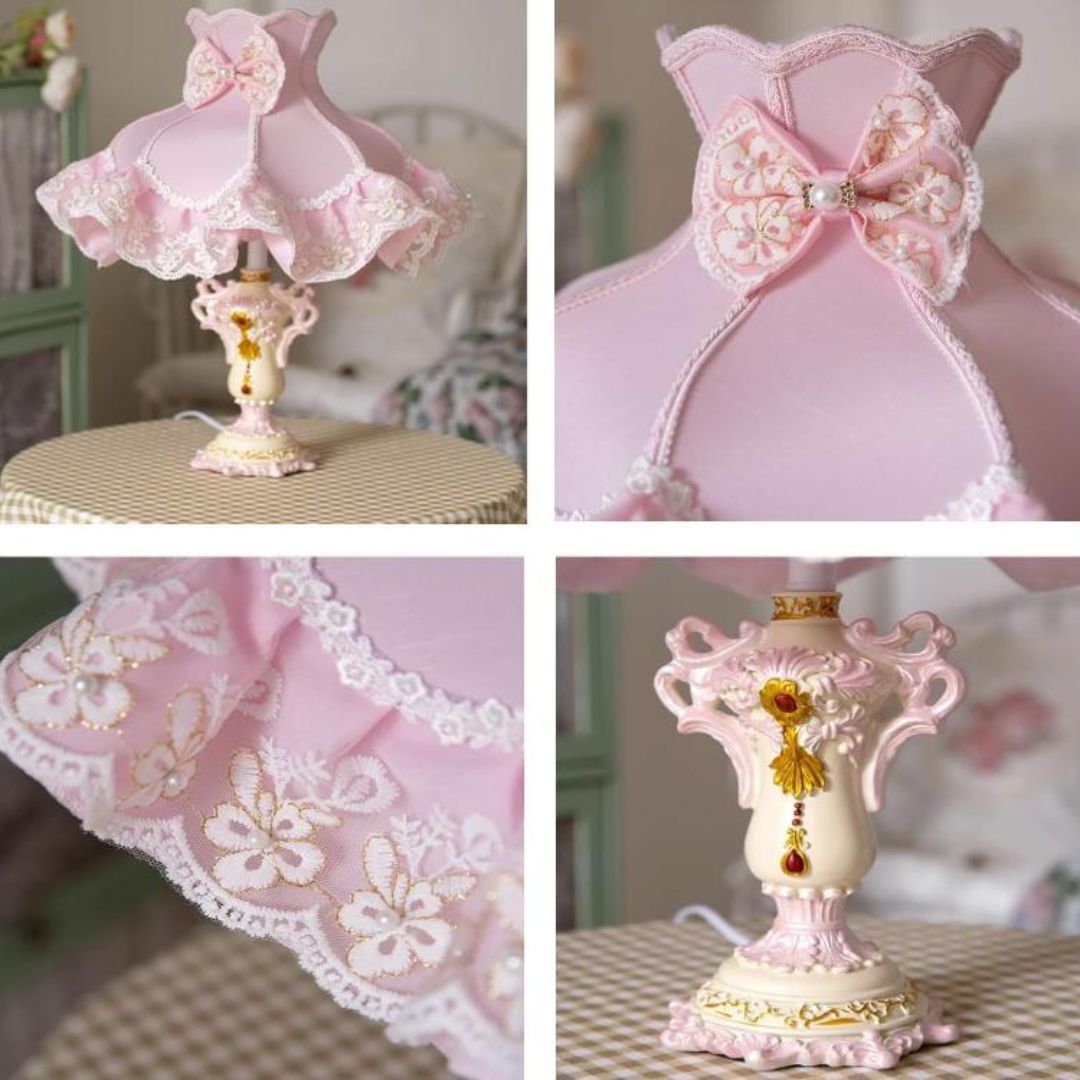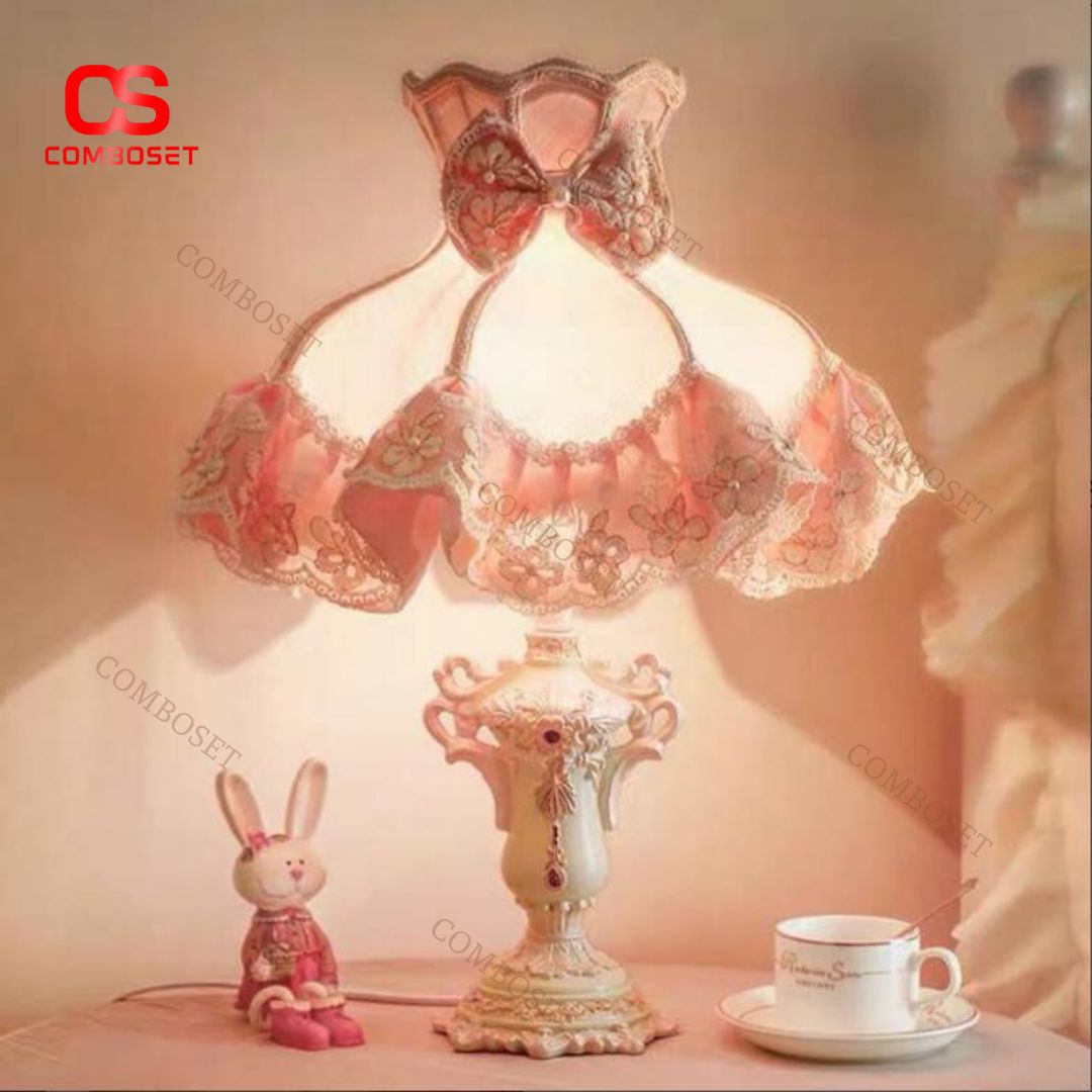 > Đèn Bàn Vải Ren Hồng Ngọt Ngào Lãng Mạn Phong Cách Hoàng Gia Châu Âu Cổ Điển Độc Đáo