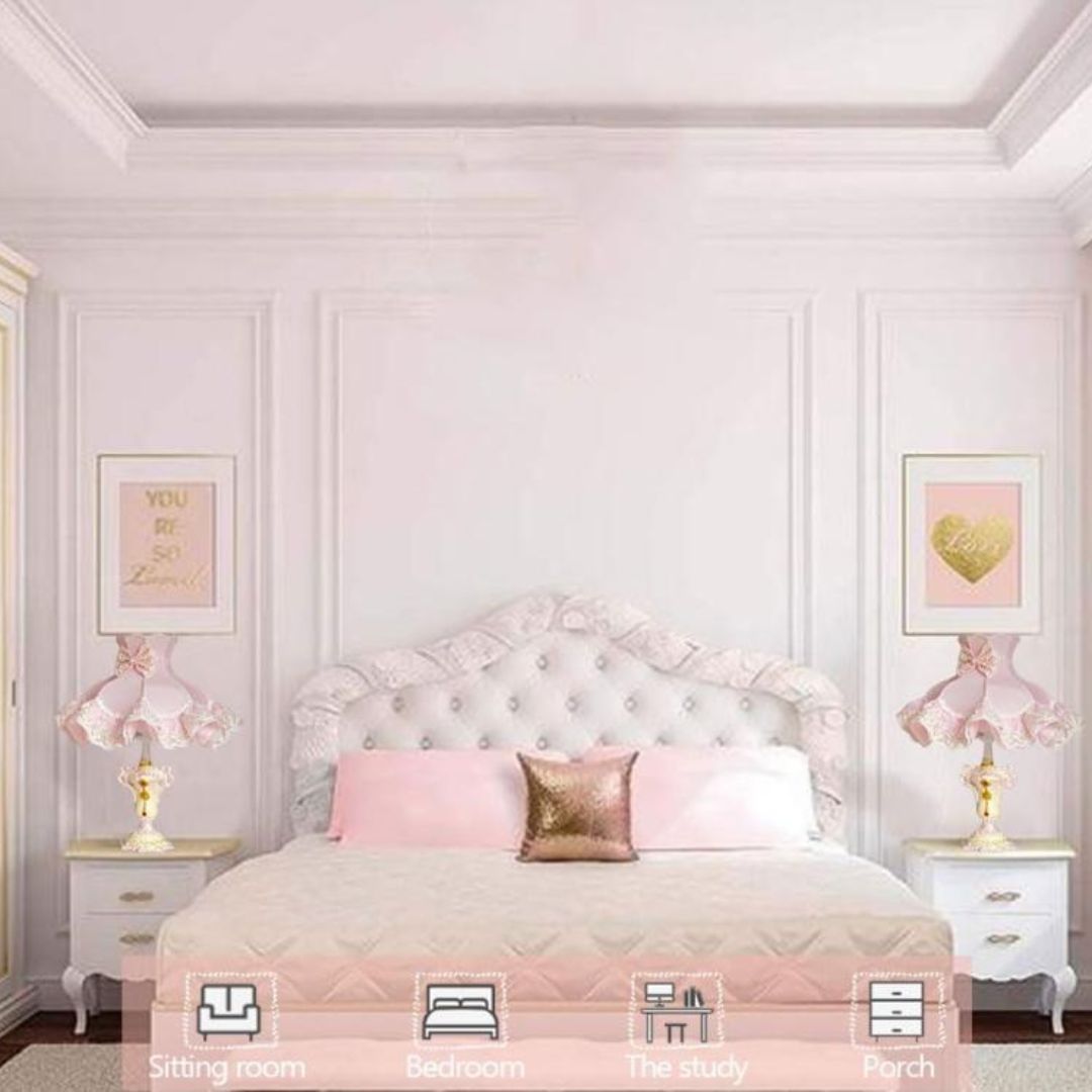Với thiết kế lãng mạn và ngọt ngào, đèn bàn vải ren nơ hồng là lựa chọn lý tưởng cho những phòng ngủ mang hơi hướng cổ tích. Khi đặt trên táp đầu giường, chiếc đèn không chỉ làm đẹp cho không gian mà còn tạo nên cảm giác ấm cúng, dịu dàng nhờ ánh sáng vàng nhẹ nhàng và lớp vải ren mềm mại. Đây chính là sự kết hợp hoàn hảo cho những ai yêu thích phong cách công chúa và mong muốn có một không gian thư giãn nhẹ nhàng trước khi đi vào giấc ngủ.