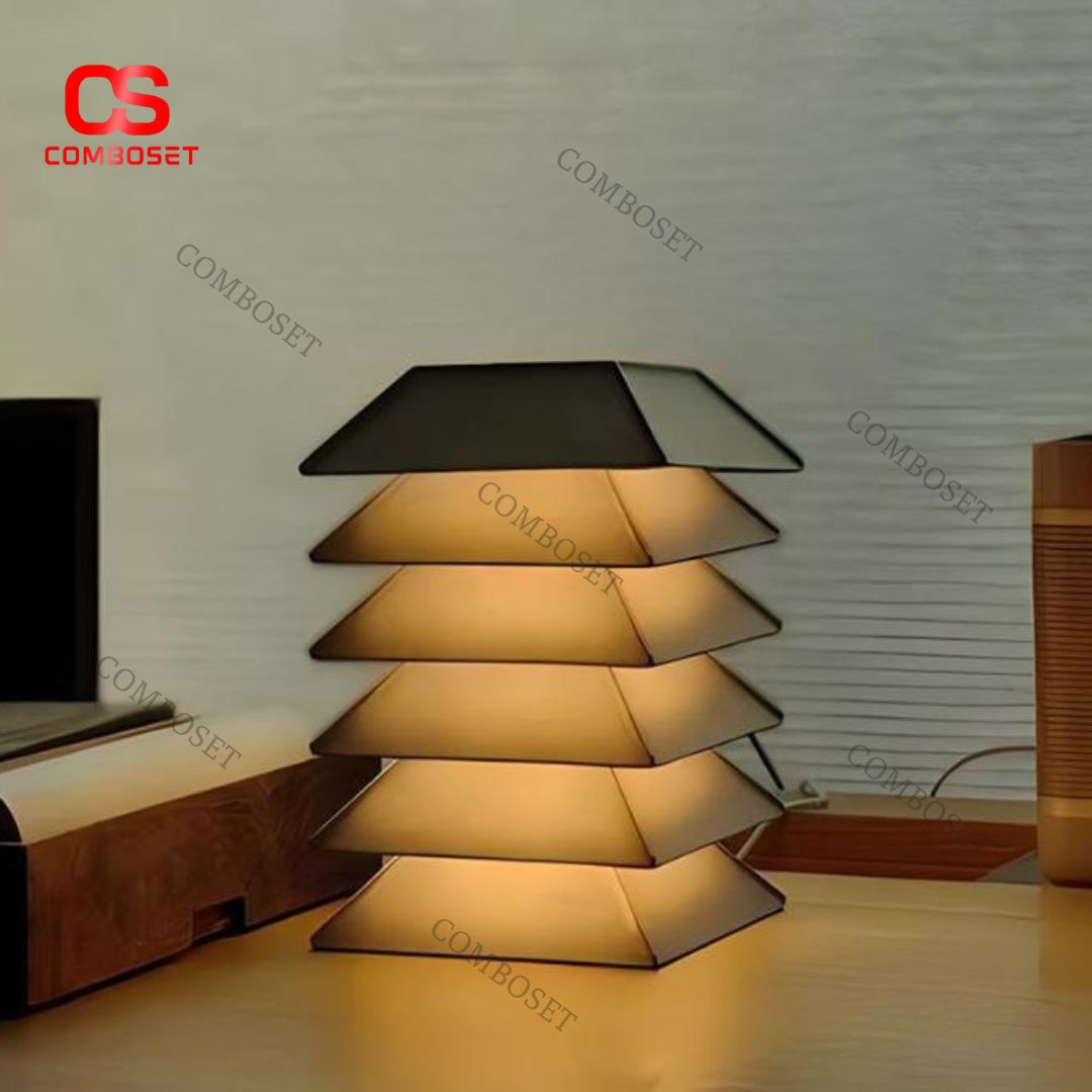 Đèn bàn xếp lớp là dòng đèn décor mang phong cách hình học (geometric) hiện đại, sở hữu thiết kế nhiều tầng được ghép nối theo dạng tháp. Khi ánh sáng lan tỏa từ bên trong, mỗi tầng lại hắt sáng ra ngoài theo một hướng khác nhau, tạo thành một cấu trúc ánh sáng đa lớp vô cùng bắt mắt.