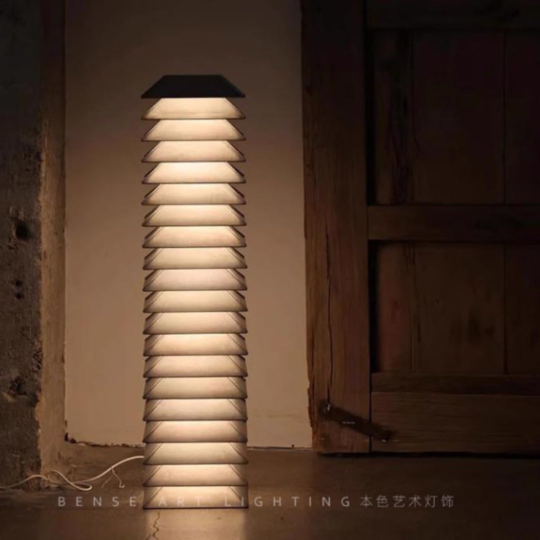 Trong phòng ngủ, đèn bàn xếp lớp đóng vai trò như một vật phẩm tạo không khí. Ánh sáng dịu nhẹ tạo cảm giác thư giãn, rất thích hợp cho bàn đầu giường hoặc góc đọc sách. Ngoài ra, mẫu đèn này còn phù hợp dùng trong homestay, studio chụp ảnh, showroom nội thất, giúp tăng tính thẩm mỹ và tạo dấu ấn đặc biệt. Dù đặt ở đâu, chiếc đèn cũng tỏa ra vẻ đẹp an tĩnh, hiện đại và giàu cảm xúc.