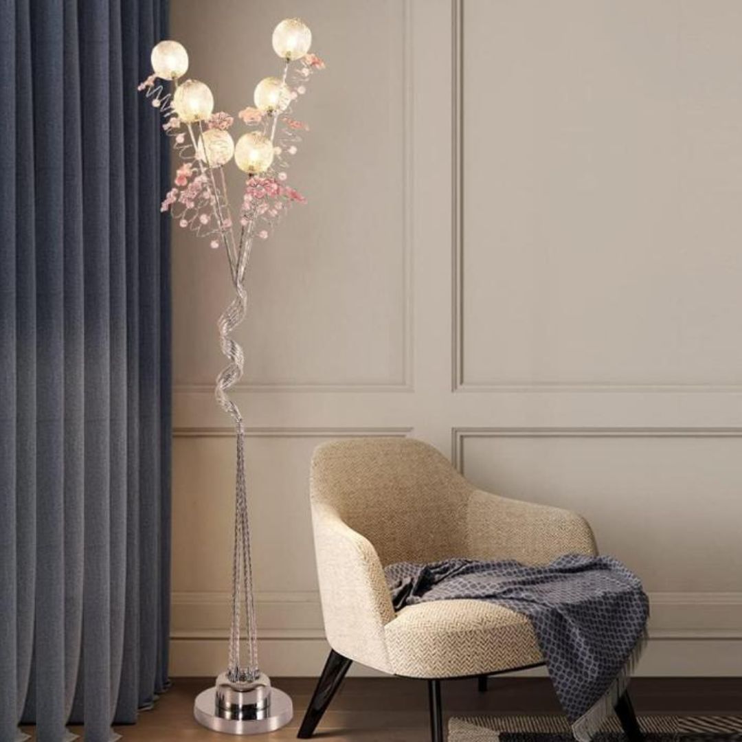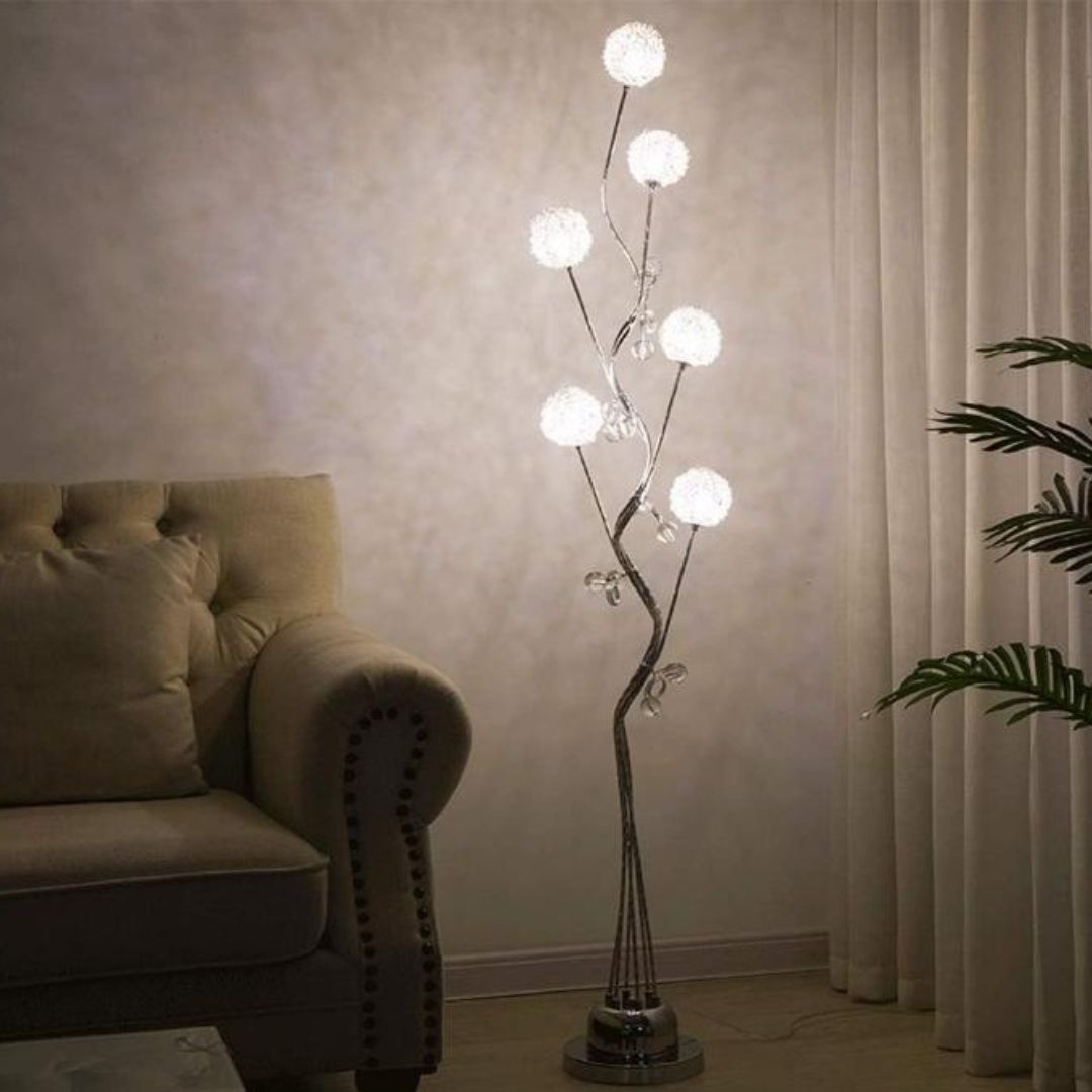 Phòng khách là nơi thể hiện rõ nhất phong cách sống và gu thẩm mỹ của gia chủ. Một chiếc đèn cây hoa sắc màu với thiết kế rực rỡ, mềm mại như nhành hoa bung nở sẽ nhanh chóng trở thành điểm nhấn nổi bật giữa không gian. Dù được đặt cạnh sofa, gần kệ sách hay bên bàn trà, chiếc đèn vẫn thu hút mọi ánh nhìn nhờ hình khối độc đáo và ánh sáng đa sắc lung linh. Không cần thêm nhiều chi tiết décor phức tạp, chỉ một mẫu đèn như vậy cũng đủ khiến phòng khách trở nên ấn tượng, sinh động và đầy nghệ thuật.