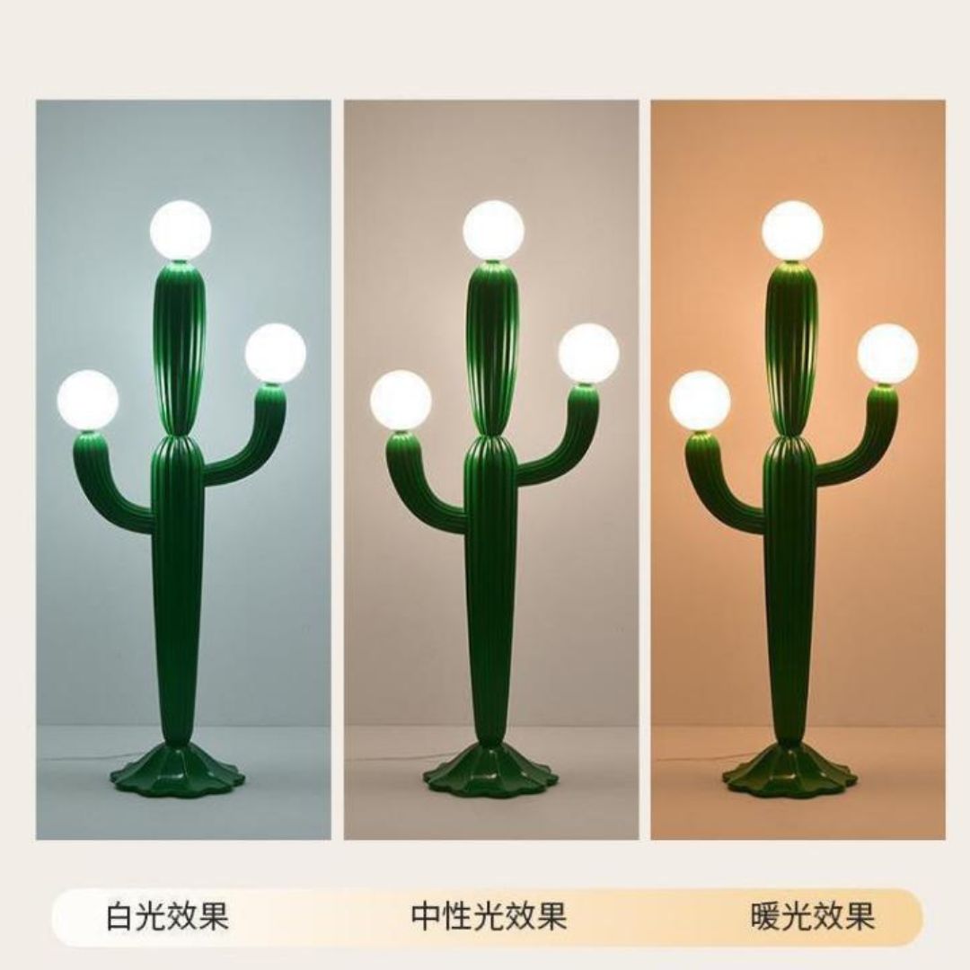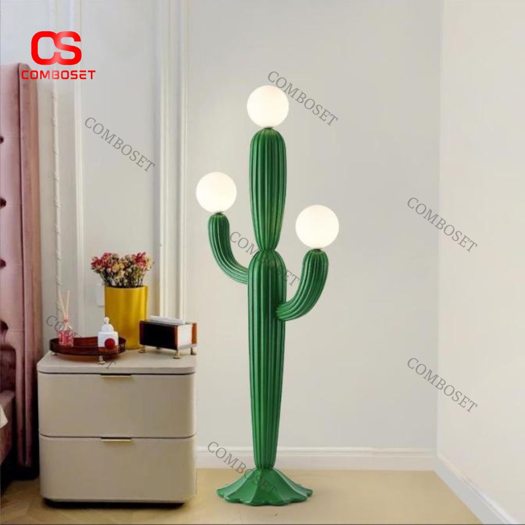 > Đèn Sàn Cây Xương Rồng Thiết Kế Tinh Xảo, 4 Bóng LED Trắng Mờ, Phong Cách Nội Thất Nghệ Thuật