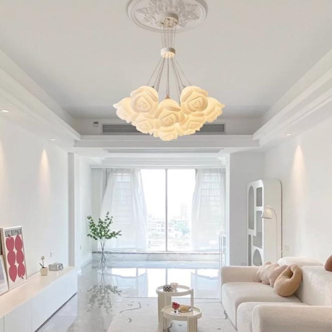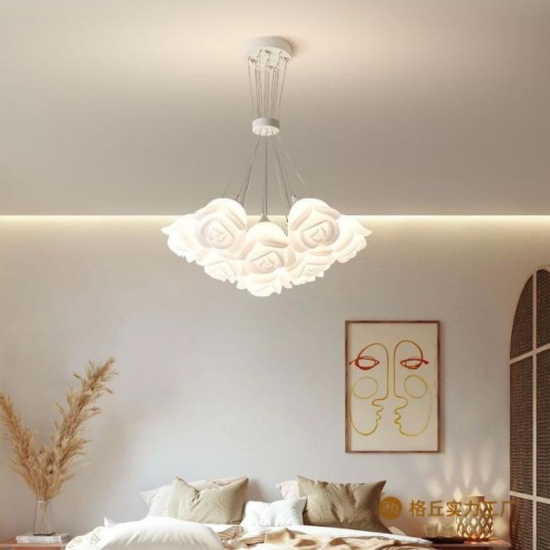 Không chỉ phù hợp cho phòng khách, đèn chùm hoa trắng sữa còn là lựa chọn tuyệt vời cho phòng ngủ. Ánh sáng vàng dịu nhẹ từ đèn mang đến bầu không khí ấm áp và thư giãn, tạo điều kiện lý tưởng để bạn dễ dàng chìm vào giấc ngủ sâu. Thiết kế mềm mại, lấy cảm hứng từ những đóa hoa trắng nở rộ, khiến căn phòng trở nên lãng mạn và yên bình hơn bao giờ hết. Với chiếc đèn này, phòng ngủ không chỉ là nơi nghỉ ngơi mà còn trở thành chốn riêng tư đầy cảm xúc, giúp bạn tái tạo năng lượng sau một ngày dài.