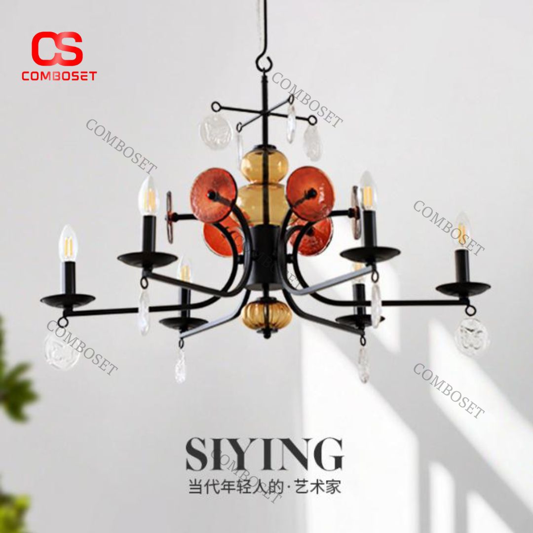 Đèn Chùm Retro Kim Loại Phối Thủy Tinh Màu Hổ Phách Nét Cổ Điển Sang Trọng Cho Mọi Không Gian