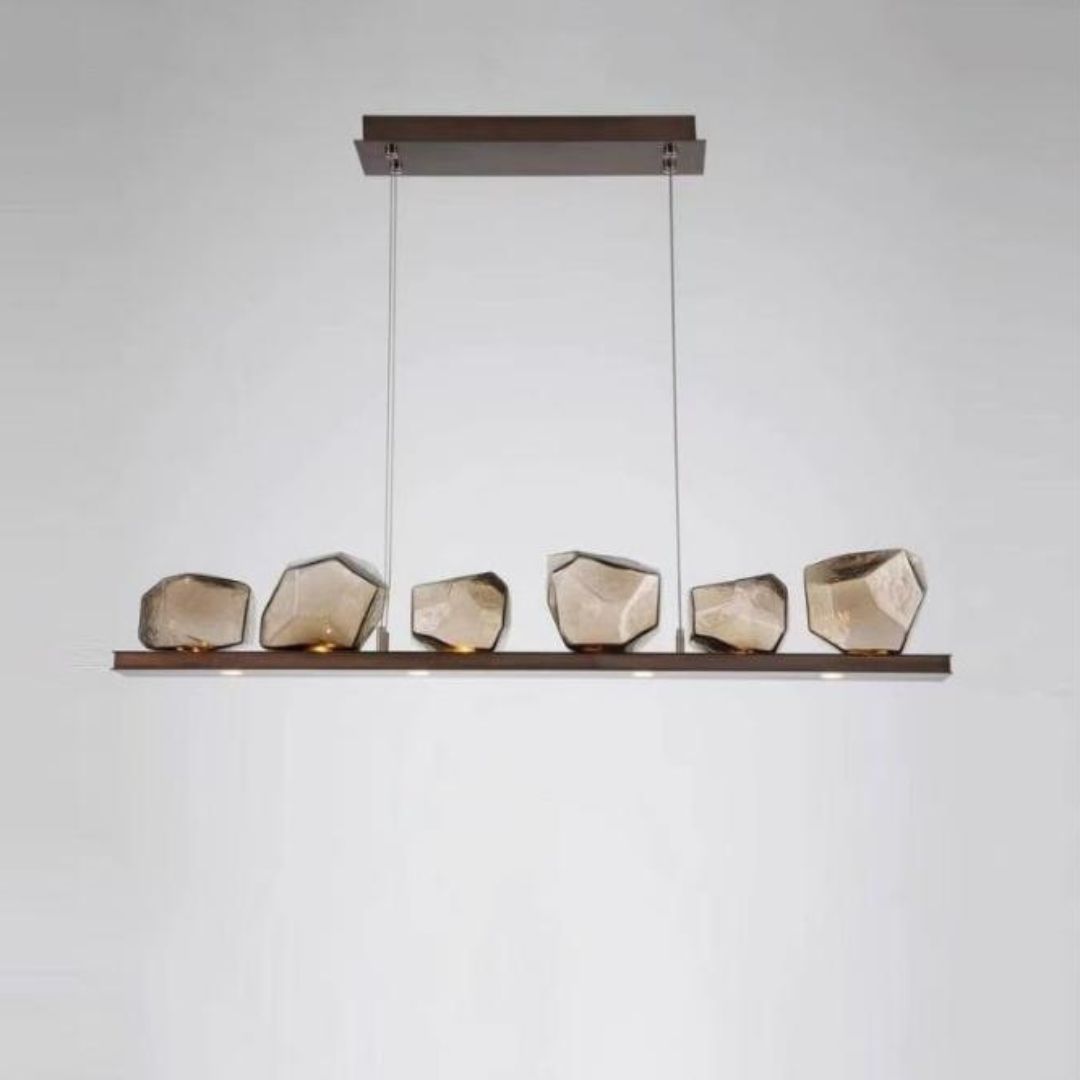 Đèn chùm thuỷ tinh đa giác là lựa chọn lý tưởng cho phòng khách nhờ khả năng tạo điểm nhấn mạnh mẽ. Khi treo ở trung tâm, đèn giúp không gian trở nên nổi bật và thu hút hơn. Ánh sáng phản chiếu từ các khối thủy tinh mang lại cảm giác sang trọng và đẳng cấp. Ngoài ra, sản phẩm cũng rất phù hợp với khu vực bàn ăn. Thiết kế dạng vòng hoặc thanh ngang giúp ánh sáng phân bổ đều, tạo cảm giác ấm cúng cho bữa ăn gia đình. Đây là giải pháp chiếu sáng vừa đẹp vừa hiệu quả.