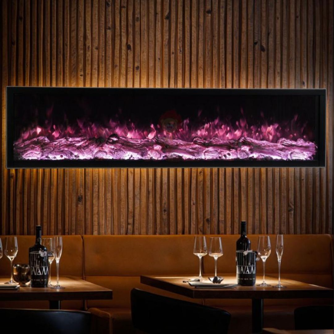 Đèn được chế tạo để lắp âm trực tiếp vào tường hoặc đặt sát mép tường, tạo cảm giác như một khung tranh ánh sáng sống động đang chuyển động không ngừng. Việc giấu khung đèn vào tường giúp tiết kiệm diện tích đáng kể, đồng thời mang đến một bề mặt phẳng liền mạch, rất phù hợp với các không gian hiện đại. Kích thước lớn từ 100–200cm cũng là ưu điểm giúp đèn LED âm tường lò sưởi tạo hiệu ứng nổi bật tại những vị trí trung tâm như phòng khách, đại sảnh, biệt thự hay các khu nghỉ dưỡng cao cấp.