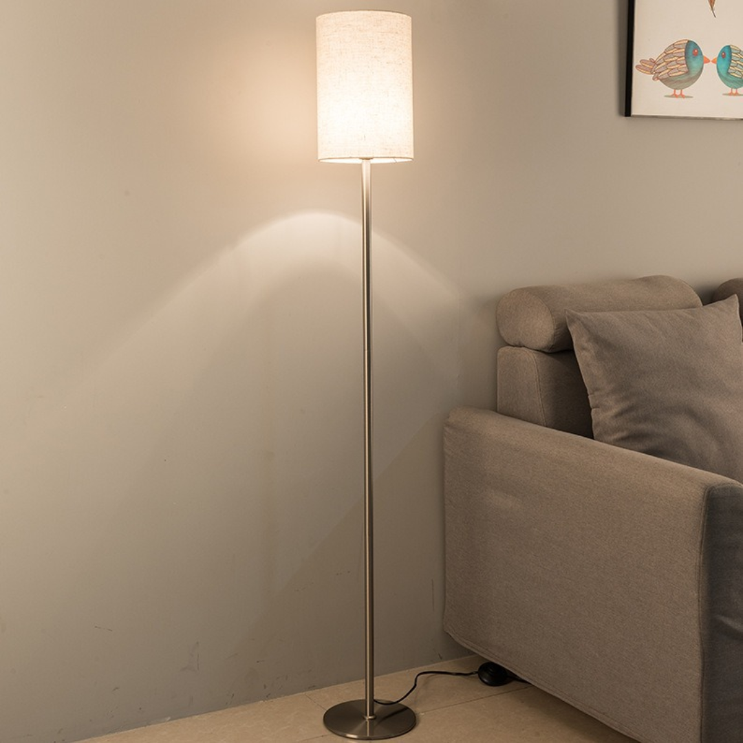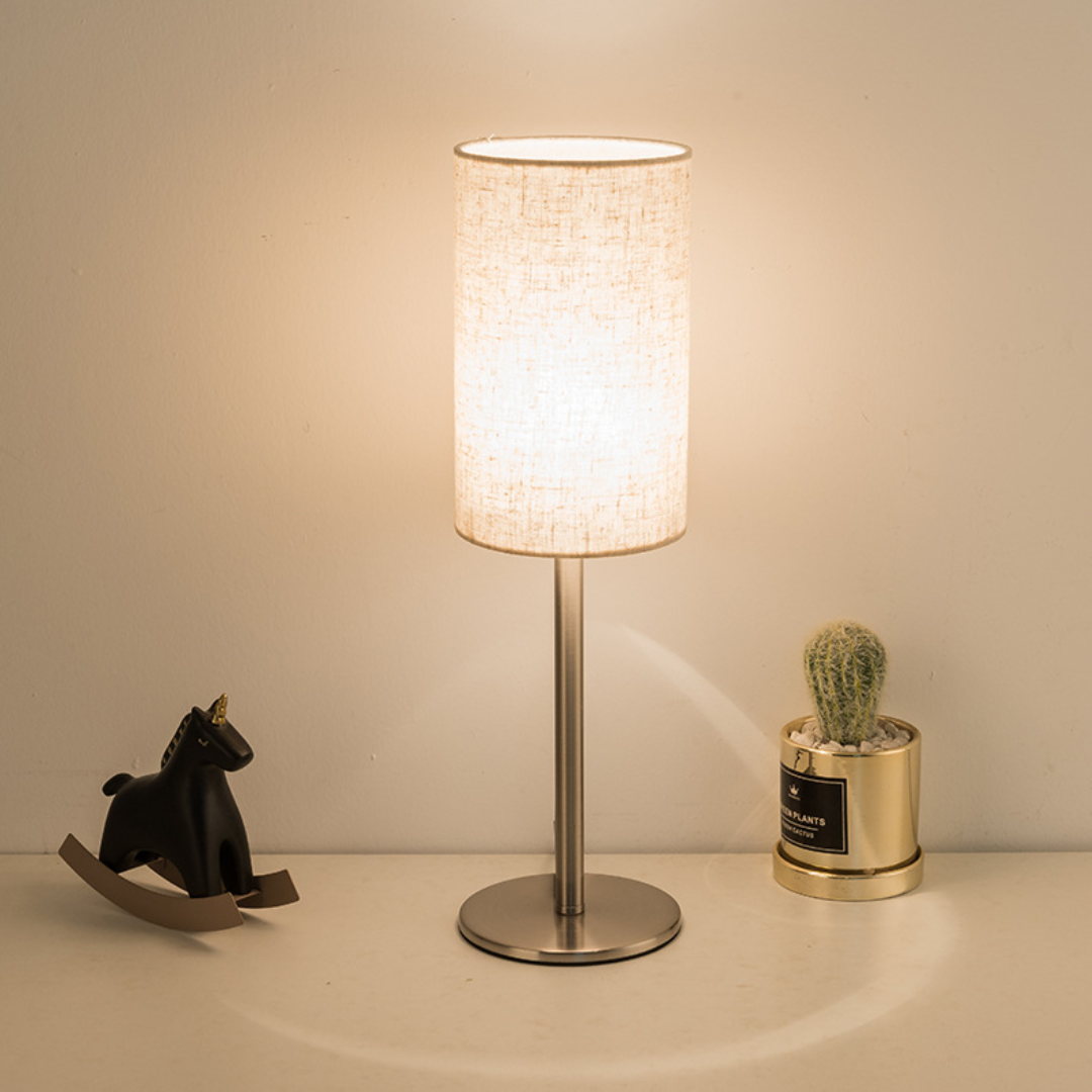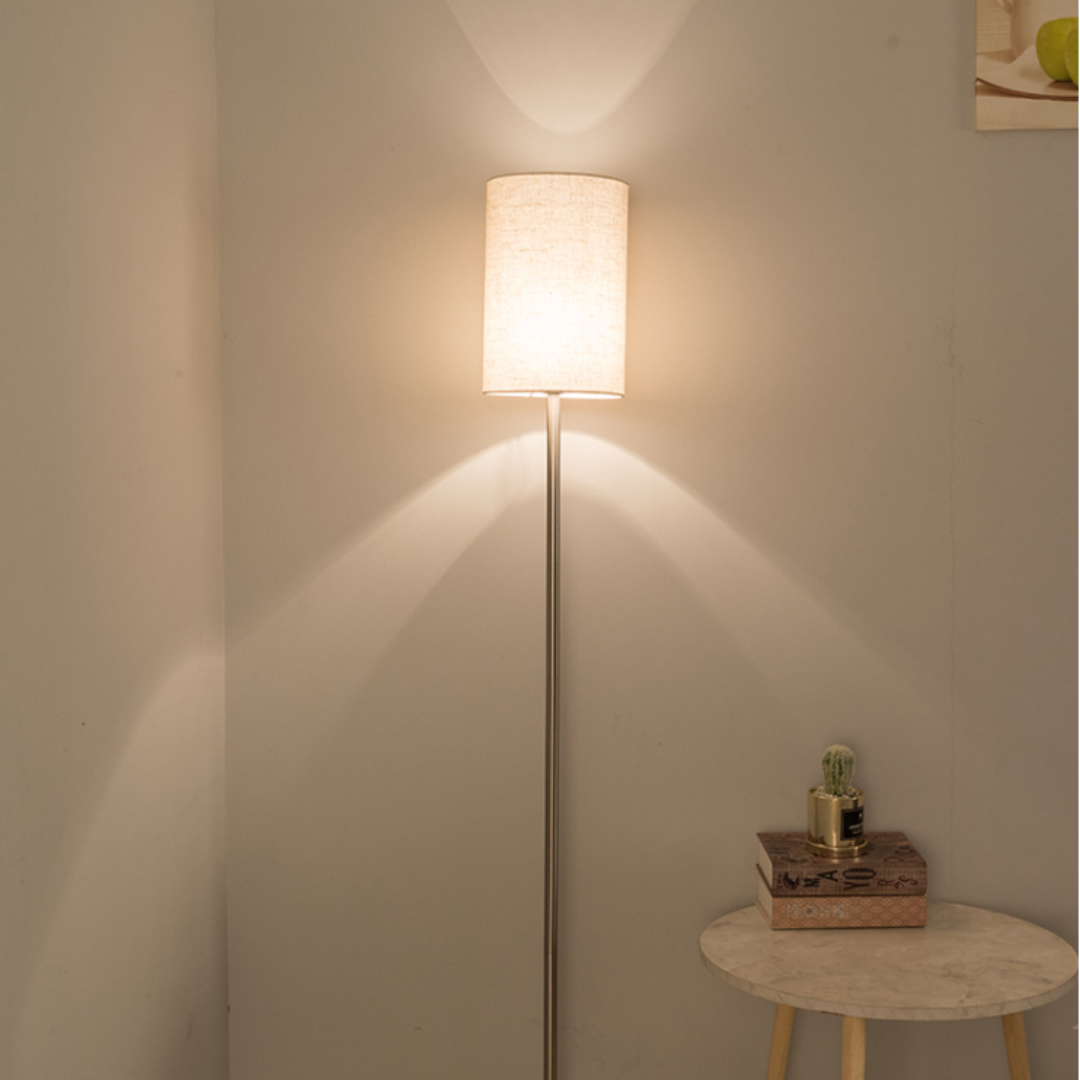 Đèn led chao vải hình trụ tròn sở hữu thiết kế Bắc Âu đặc trưng, mang lại vẻ đẹp giản dị nhưng không kém phần sang trọng. Chao đèn được làm từ vải, tạo ra ánh sáng dịu nhẹ, phù hợp với không khí ấm áp của những buổi tối sum vầy bên gia đình. Thân đèn và đế đèn làm từ sắt tráng gương, vừa chắc chắn vừa mang lại cảm giác hiện đại cho sản phẩm. Sự kết hợp giữa chất liệu vải mềm mại và kim loại cứng cáp tạo nên một điểm nhấn ấn tượng trong không gian.