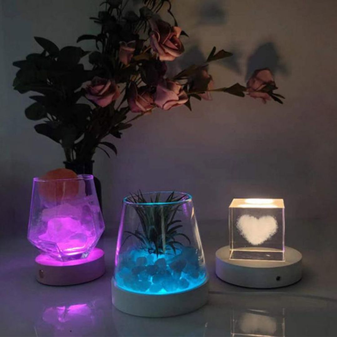 Nhiều người yêu thích sự tối giản nhưng vẫn muốn điểm nhấn nhẹ nhàng cho góc làm việc hoặc phòng ngủ. Đặt một đèn LED đế gỗ hình tròn dưới bình tinh dầu, chậu cây mini hoặc khối pha lê sẽ tạo hiệu ứng thư giãn, giúp cân bằng tâm trạng và tăng cảm hứng sáng tạo.