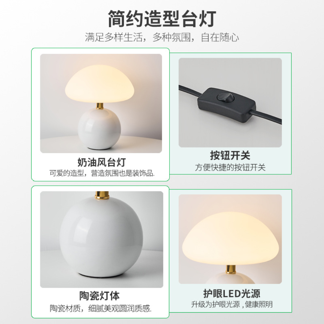 >> Đèn Bàn Ngủ Trang Trí Hình Nấm, Đèn Bàn Wabi-Sabi Gốm Sứ Decor Phòng Ngủ/ Bàn Làm Việc