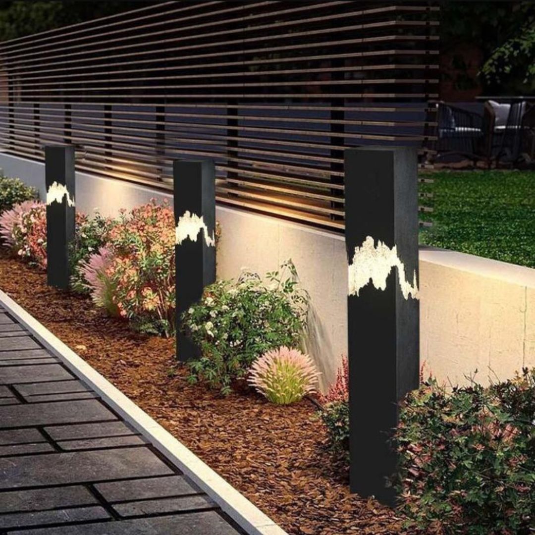 Phần thân đèn được làm từ kim loại sơn tĩnh điện màu đen mờ, mang đến cảm giác vững chắc, hiện đại và đậm chất kiến trúc. Họa tiết cắt laser nghệ thuật ở giữa thân đèn tạo điểm nhấn nổi bật – khi bật sáng vào ban đêm, ánh sáng vàng ấm len lỏi qua từng đường cắt, tạo hiệu ứng lung linh và độc đáo như một bức tranh ánh sáng. Chính nhờ phong cách thiết kế “ít mà chất”, đèn lối đi sân vườn hoàn hảo với các công trình có phong cách đương đại, resort, khu nghỉ dưỡng hoặc không gian công cộng.