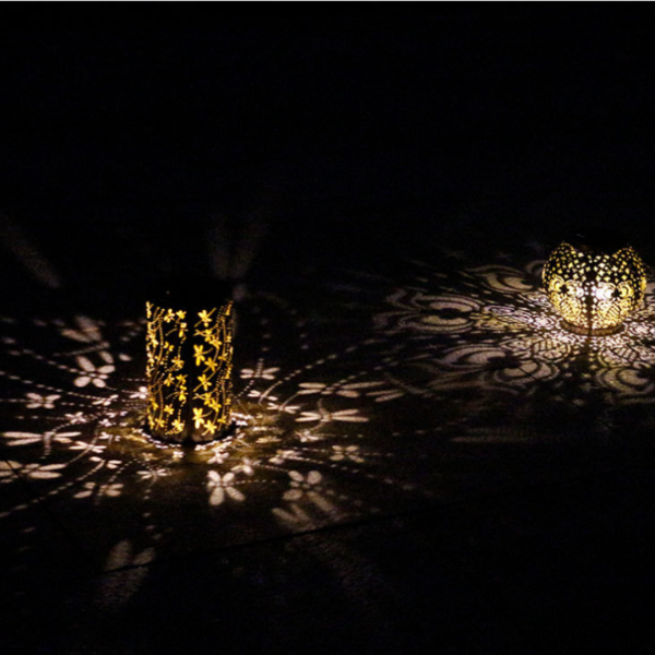 > Đèn Lồng Năng Lượng Mặt Trời Chống Thấm Nước Hình Chuồn Chuồn Rỗng Kim Loại Bằng Sắt (1 Cặp)
