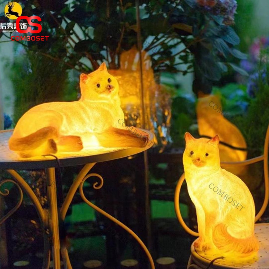 Đèn mèo phát sáng là sự kết hợp hoàn hảo giữa ánh sáng ấm áp, thiết kế dễ thương và chất liệu bền bỉ. Sản phẩm không chỉ chiếu sáng mà còn nâng tầm thẩm mỹ cho sân vườn, mang lại cảm giác gần gũi và sinh động. Với kiểu dáng mô phỏng mèo chân thực như trong hình, đèn tạo nên điểm nhấn nổi bật và thu hút. Bất kỳ gia đình hay homestay nào muốn tăng vẻ lung linh cho không gian ngoài trời đều có thể chọn mẫu đèn này.