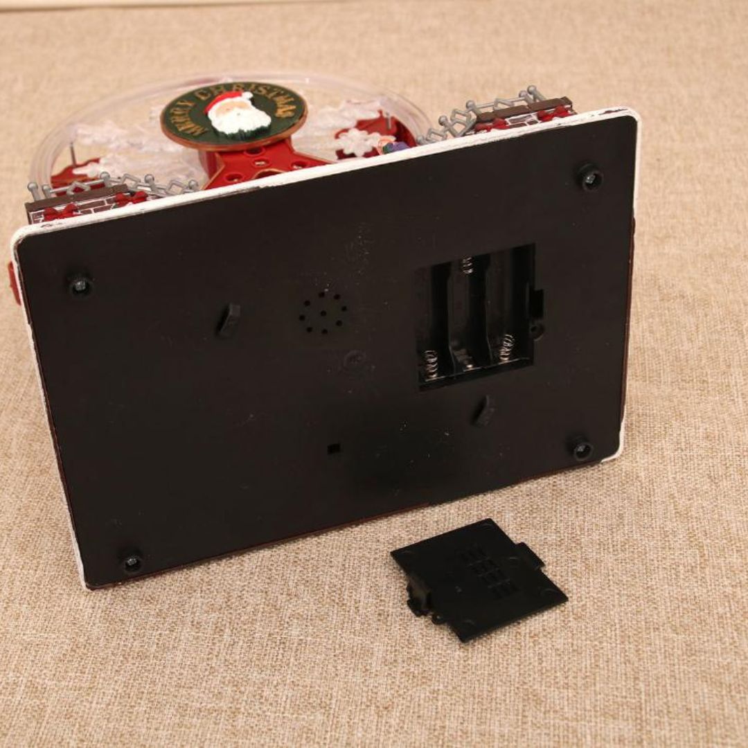 Không giống các món đồ trang trí Noel thông thường, đèn nhạc vòng quay mang hình dáng vòng quay khổng lồ với hiệu ứng chuyển động nhẹ nhàng, kết hợp giữa ánh sáng LED nhiều màu và nhạc nền vui tươi. Từng chi tiết như ông già Noel, bông tuyết, hàng rào và cây thông được làm tỉ mỉ, giúp sản phẩm trở thành điểm nhấn ấn tượng trong không gian.