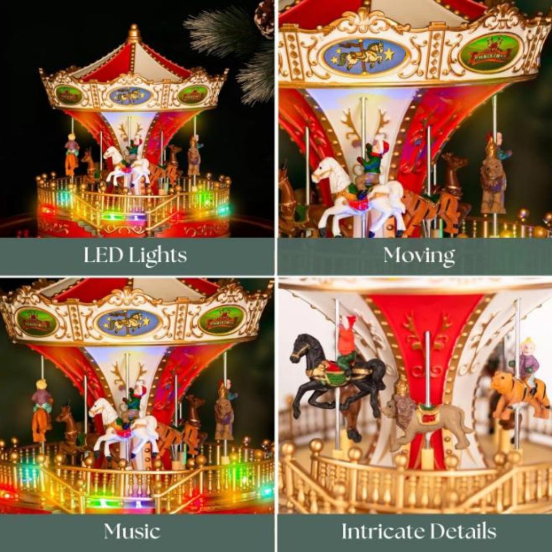 Trẻ nhỏ luôn yêu thích những vật trang trí có màu sắc rực rỡ và chuyển động thú vị. Với chiếc đèn Noel vòng xoay ngựa, bé sẽ cảm thấy như mình đang bước vào thế giới cổ tích – nơi những chú ngựa xoay tròn bên tiếng nhạc dịu dàng. Đây cũng là phụ kiện lý tưởng để tạo background chụp ảnh Noel lung linh cho cả gia đình.