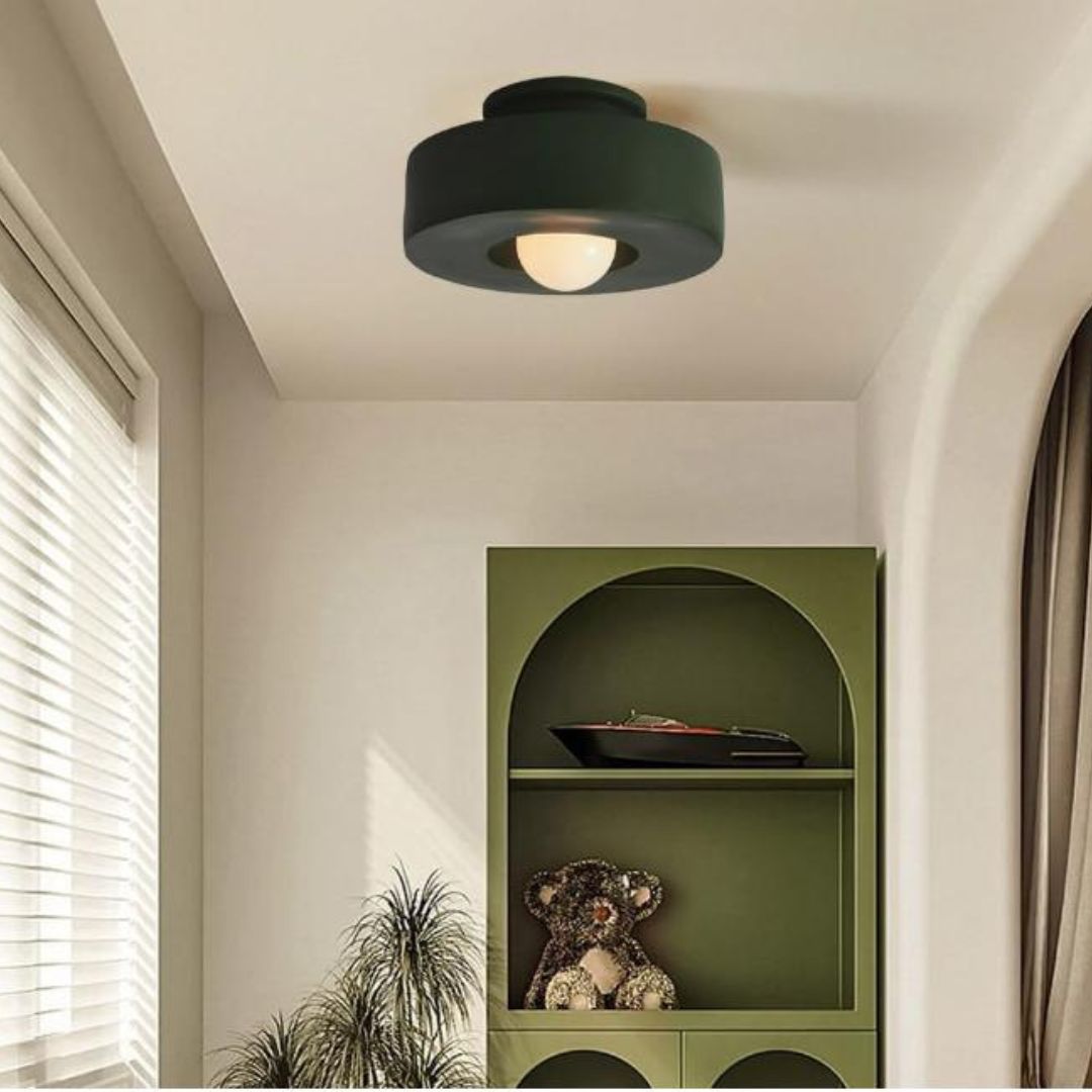 Trong phòng ngủ, chỉ cần một hoặc hai chiếc đèn lắp ở vị trí trung tâm hoặc đầu giường cũng đủ tạo nên không khí yên bình, dễ chịu. Ánh sáng vàng dịu nhẹ tỏa ra qua lớp chao tròn giúp xoa dịu tâm trạng sau một ngày dài, mang lại cảm giác thư giãn tuyệt đối. Nhờ đó, đèn ốp trần hình trụ tối giản trở thành lựa chọn lý tưởng cho những ai yêu thích sự tối giản, nhẹ nhàng và tinh tế trong không gian riêng tư.