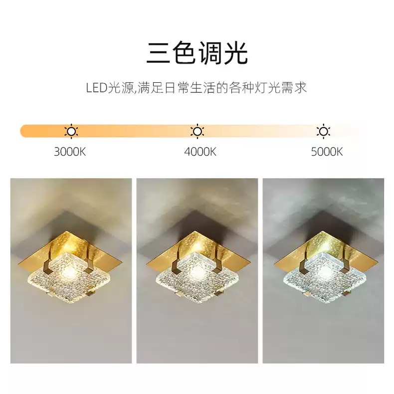 Đèn Ốp Trần HÌnh Vuông, Đèn Trần Thép Không Gỉ Ba Chế Độ Màu Decro Phòng Khách, Hành Lang
