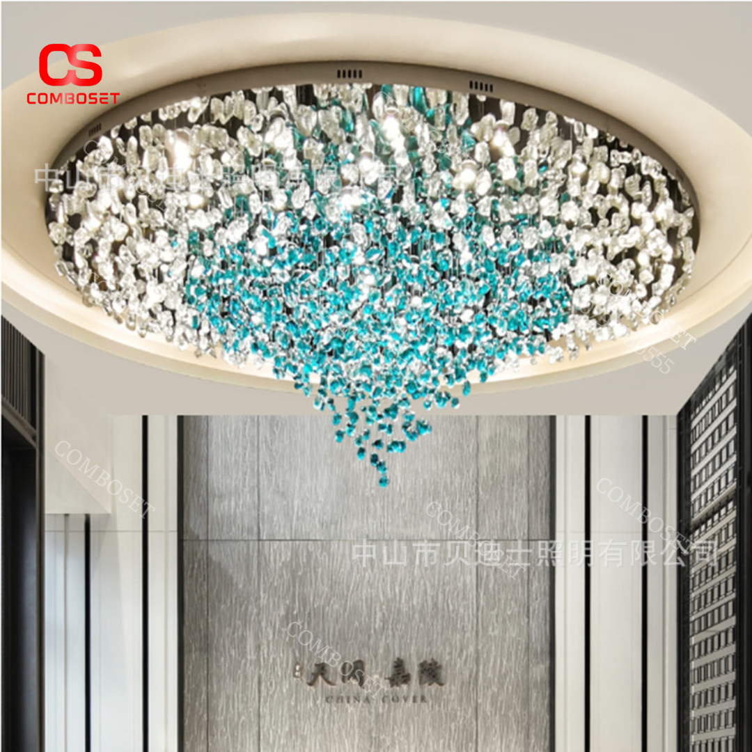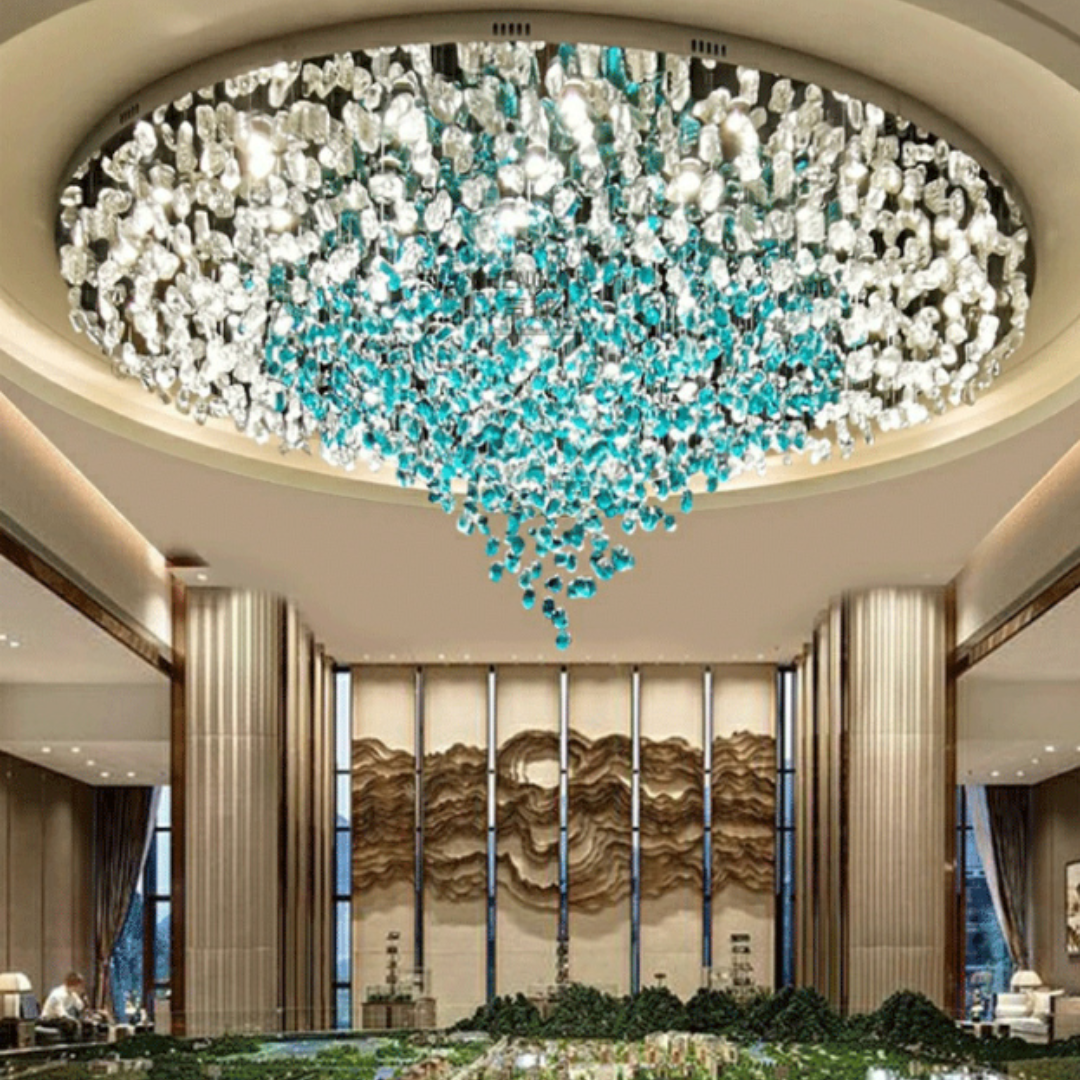 Đèn Ốp Trần Pha Lê Xanh Biển Sang Trọng Tinh Tế Decor Khách Sạn/ Biệt Thự/ Phòng Triển Lãm