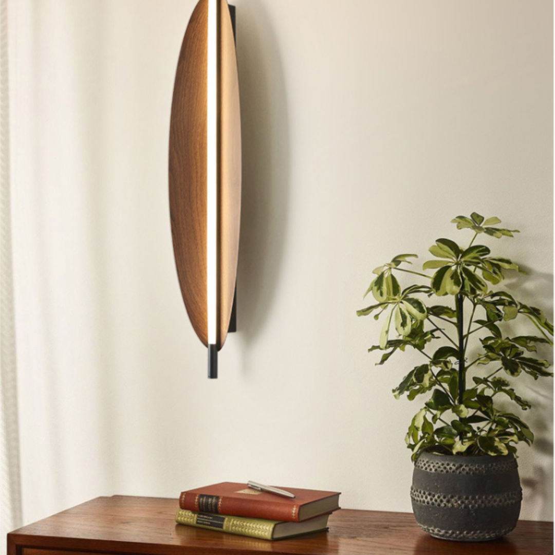 Đèn ốp tường chiếc lá nổi bật với thiết kế hình chiếc lá màu nâu, tạo nên một vẻ đẹp gần gũi và tự nhiên. Sự lựa chọn màu nâu không chỉ tạo sự hòa hợp với các yếu tố trang trí khác trong phòng mà còn mang lại cảm giác ấm cúng và dễ chịu. Thiết kế hình chiếc lá không chỉ đơn giản mà còn tinh tế, giúp làm nổi bật không gian mà không làm cho nó trở nên quá phức tạp hoặc lộn xộn.