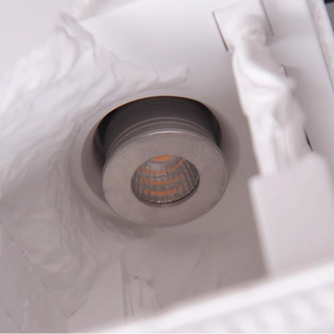 Với màu trắng đặc trưng của thạch cao, đèn tạo ra cảm giác thanh thoát, dễ dàng phù hợp với nhiều phong cách trang trí khác nhau. Sự lựa chọn thạch cao cũng giúp đèn nhẹ nhàng và dễ dàng lắp đặt, không gây quá nhiều áp lực lên tường, phù hợp cho cả không gian hiện đại và cổ điển. Đèn không chỉ mang lại ánh sáng mà còn là biểu tượng của nghệ thuật và phong cách sống tinh tế.