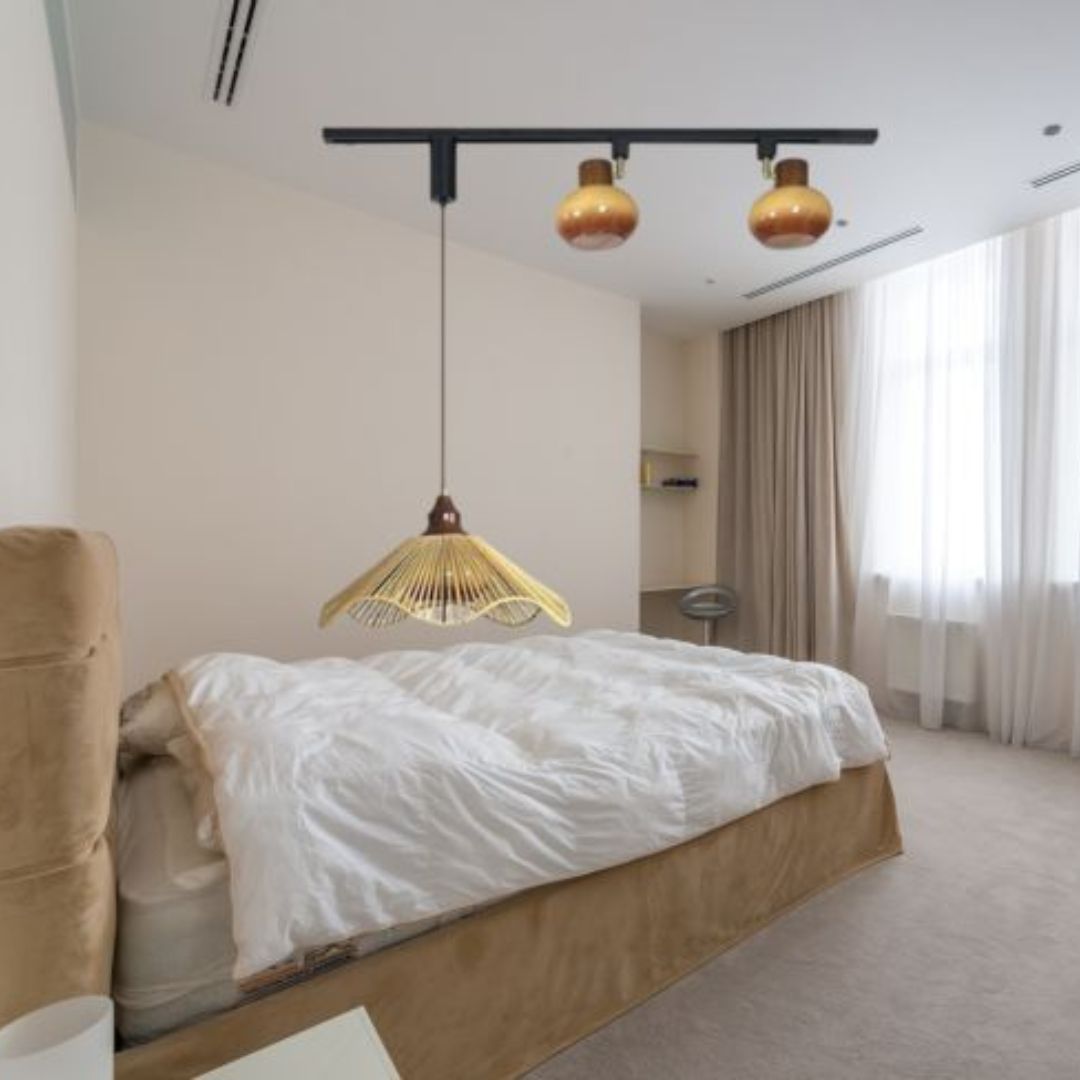 Trong những căn hộ mang phong cách tối giản (Minimalism) hoặc Japandi – sự kết hợp giữa Nhật Bản và Bắc Âu – sự mộc mạc, tinh gọn và ấm cúng là yếu tố cốt lõi. Đèn rọi ray thả mây tre là lựa chọn hoàn hảo cho phong cách này. Nhờ hệ thống ray linh hoạt, đèn có thể được lắp đặt tại các vị trí như đảo bếp, bàn ăn, lối đi, góc làm việc hoặc khu đọc sách. Chỉ cần vài bóng đèn rọi ray thả mây tre bố trí hợp lý là đã đủ mang lại không khí nhẹ nhàng, yên bình nhưng vẫn toát lên tính thẩm mỹ tinh tế cho toàn bộ không gian sống.
