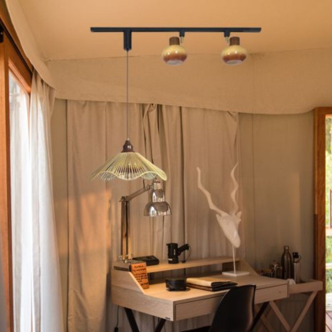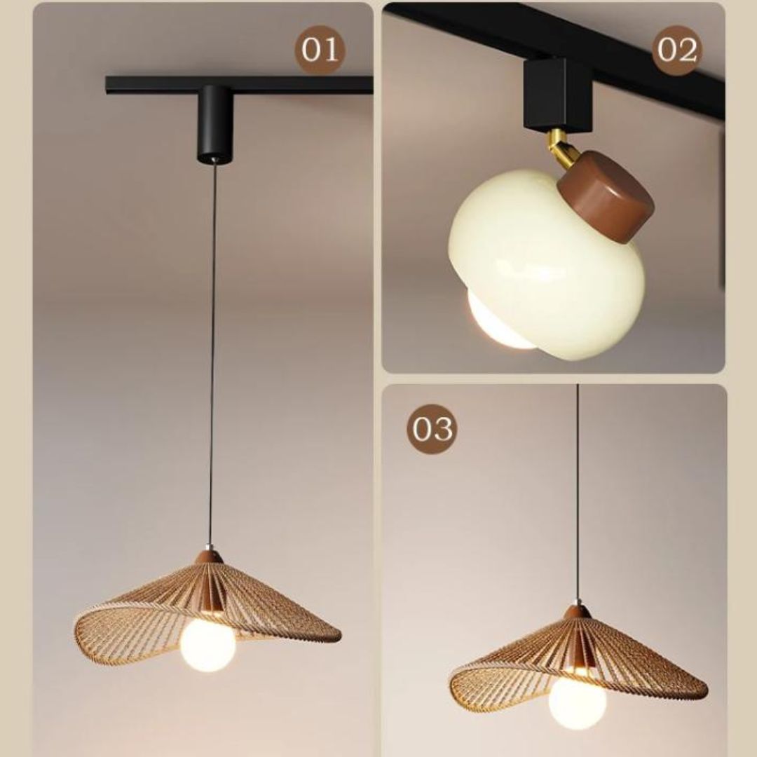 Đèn rọi ray thả mây tre mang trong mình linh hồn của làng nghề truyền thống, một phần không thể thiếu trong văn hoá sống của người Việt. Dù đặt trong căn hộ hiện đại hay không gian vintage, đèn vẫn giữ được sự hài hòa tinh tế. Sử dụng hệ ray giúp người dùng tùy ý điều chỉnh số lượng, vị trí và kiểu dáng đèn. Bạn có thể lắp nhiều mẫu đèn rọi ray thả mây tre trên cùng thanh ray: vừa có đèn thuỷ tinh để tạo điểm nhấn tập trung, vừa có đèn mây tre cho ánh sáng tỏa đều.