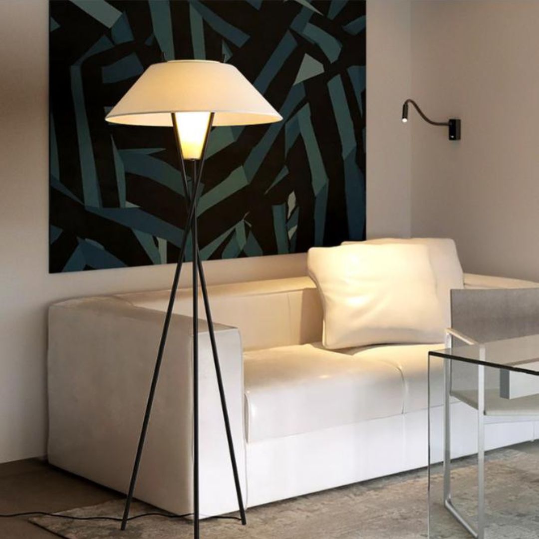 Chụp đèn vải hình nón được xem là linh hồn của đèn sàn chân gậy, mang đến cảm giác ấm cúng và dễ chịu cho căn phòng. Chất liệu vải cao cấp giúp ánh sáng trở nên dịu nhẹ, không gây chói mắt, phù hợp dùng vào buổi tối hoặc trong những khoảnh khắc thư giãn. Tông màu kem – trắng trung tính tạo sự hài hòa với mọi bảng màu nội thất, đồng thời góp phần tăng tính thẩm mỹ cho tổng thể. Nhờ khả năng tản sáng mềm mại, khu vực đặt đèn luôn mang nét ấm áp và thư thái.