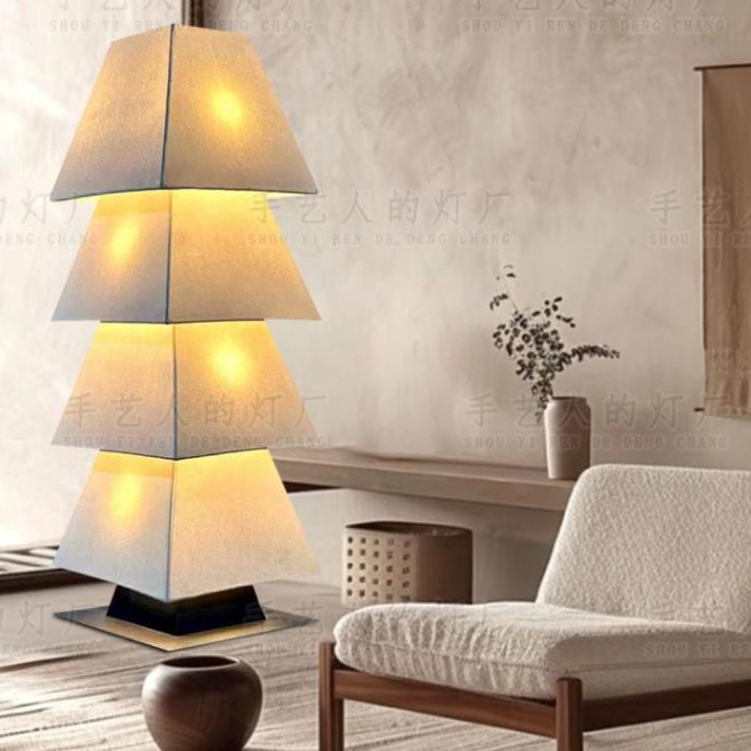 Đèn Sàn Chao Vải Xếp Tầng Ánh Sáng Vàng Ấm Wabi Sabi