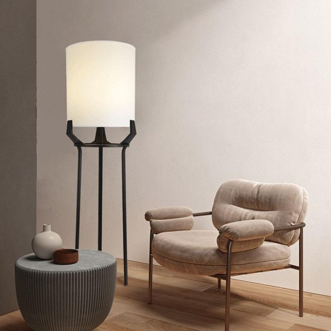 Mang tinh thần Scandinavia rõ nét, chiếc đèn sàn chụp vải trụ tròn đem đến cảm giác ấm áp, thoáng đãng và rất dễ chịu. Sự tối giản trong thiết kế giúp đèn trở thành món decor lý tưởng cho căn hộ hướng đến sự nhẹ nhàng và thư thái.