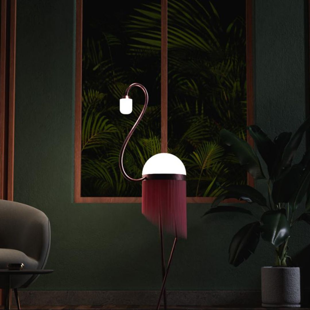 Điểm độc đáo tạo nên sức hút khó cưỡng của mẫu đèn sàn hồng hạc này chính là phần tua rua màu hồng pastel rũ xuống từ chao đèn. Những sợi tua rua mảnh mai, mềm mại chuyển động nhẹ nhàng theo từng làn gió, tạo nên hiệu ứng thị giác sống động như bộ lông vũ của loài chim quý. Đây là một bước đột phá trong thiết kế đèn sàn, mang phong cách Art Deco hòa quyện cùng nét trẻ trung, hiện đại và vô cùng gợi cảm cho không gian.