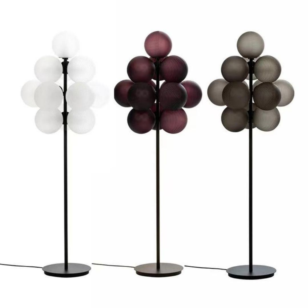 Không chỉ đơn thuần là một chiếc đèn đứng, đèn sàn thủy tinh cao cấp này còn được xem như một tác phẩm trang trí ánh sáng. Tông màu trầm sang trọng kết hợp cùng ánh sáng dịu nhẹ giúp không gian trở nên ấm cúng, tinh tế hơn. Đặc biệt, thiết kế chao tròn xếp cụm tạo hiệu ứng thị giác độc đáo, khiến đèn trở thành điểm nhấn nổi bật trong phòng khách, phòng ngủ hay khu vực tiếp khách cao cấp.