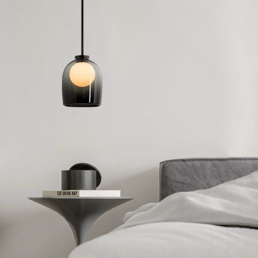 Đèn thả chao thủy tinh màu đen khói ghi điểm bởi thiết kế độc đáo, gợi lên hình ảnh của một chiếc ly treo ngược, tạo nên vẻ đẹp sáng tạo và mới lạ cho không gian nội thất. Với phần chao đèn bên ngoài được chế tác từ thủy tinh đen xám khói, chiếc đèn mang đến một vẻ đẹp huyền bí, sang trọng mà không kém phần cuốn hút. Điểm nhấn đặc biệt chính là chao thủy tinh màu trắng bên trong, được thiết kế tinh tế và đặt ở vị trí trung tâm, tạo nên sự tương phản hoàn hảo, giúp ánh sáng được khuếch tán đều khắp không gian một cách nhẹ nhàng.