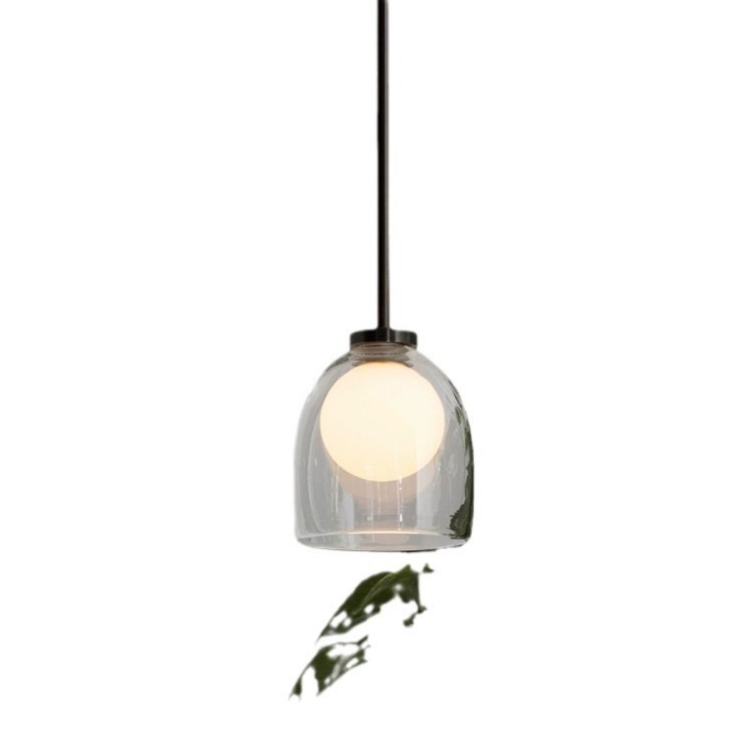 Đèn thả chao thủy tinh màu đen khói ghi điểm bởi thiết kế độc đáo, gợi lên hình ảnh của một chiếc ly treo ngược, tạo nên vẻ đẹp sáng tạo và mới lạ cho không gian nội thất. Với phần chao đèn bên ngoài được chế tác từ thủy tinh đen xám khói, chiếc đèn mang đến một vẻ đẹp huyền bí, sang trọng mà không kém phần cuốn hút. Điểm nhấn đặc biệt chính là chao thủy tinh màu trắng bên trong, được thiết kế tinh tế và đặt ở vị trí trung tâm, tạo nên sự tương phản hoàn hảo, giúp ánh sáng được khuếch tán đều khắp không gian một cách nhẹ nhàng.
