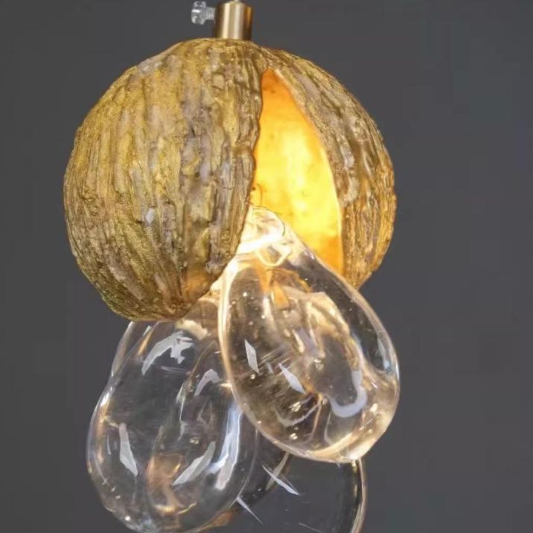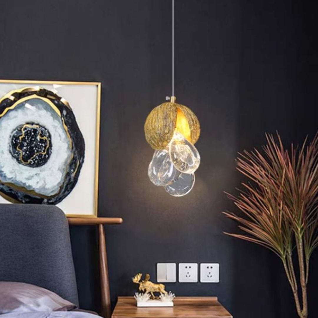 Đèn Thả Hạt Sương Nghệ Thuật Dáng Cầu Kèm Cụm Giọt Thủy Tinh Rủ