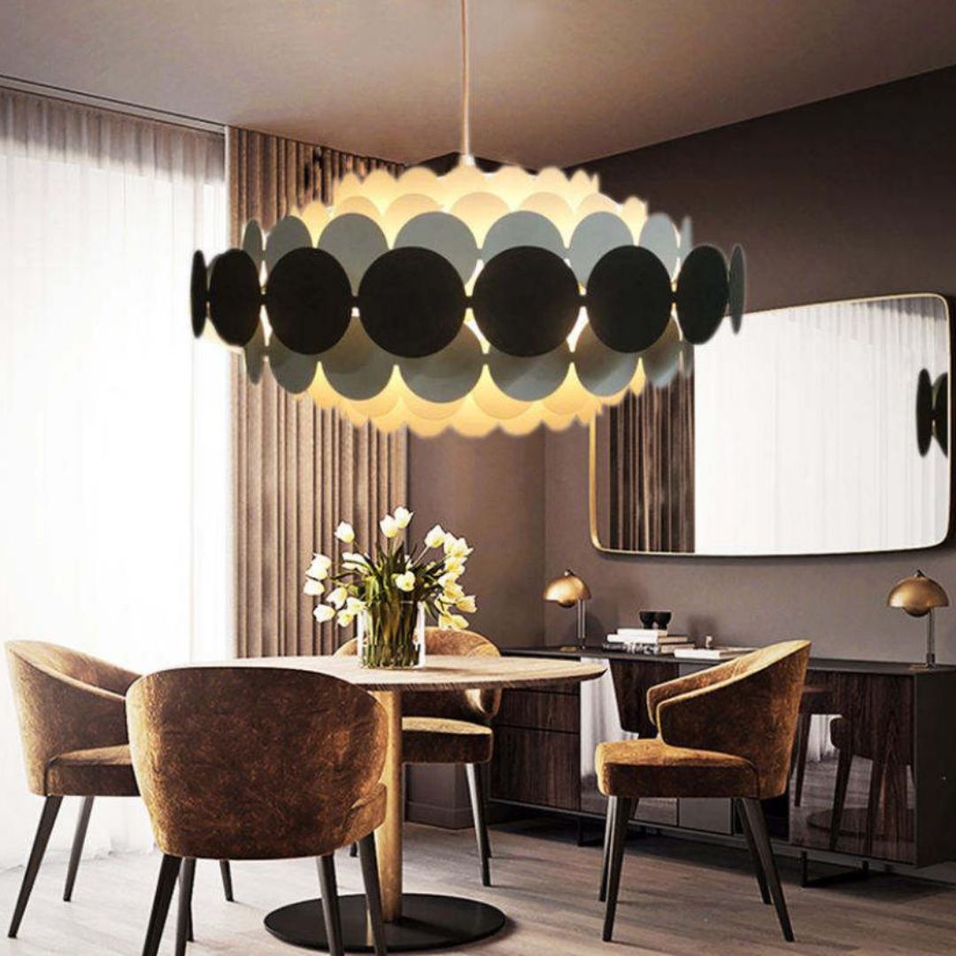 Khi được lắp đặt đúng vị trí, đèn thả kim loại vảy tròn có thể nâng tầm toàn bộ không gian nội thất. Sự kết hợp giữa ánh sáng và hình khối giúp tạo ra chiều sâu và cảm giác ấm cúng hơn. Đồng thời, thiết kế vảy tròn xếp lớp còn mang lại cảm giác mềm mại, giúp cân bằng các đường nét cứng trong kiến trúc hiện đại.
