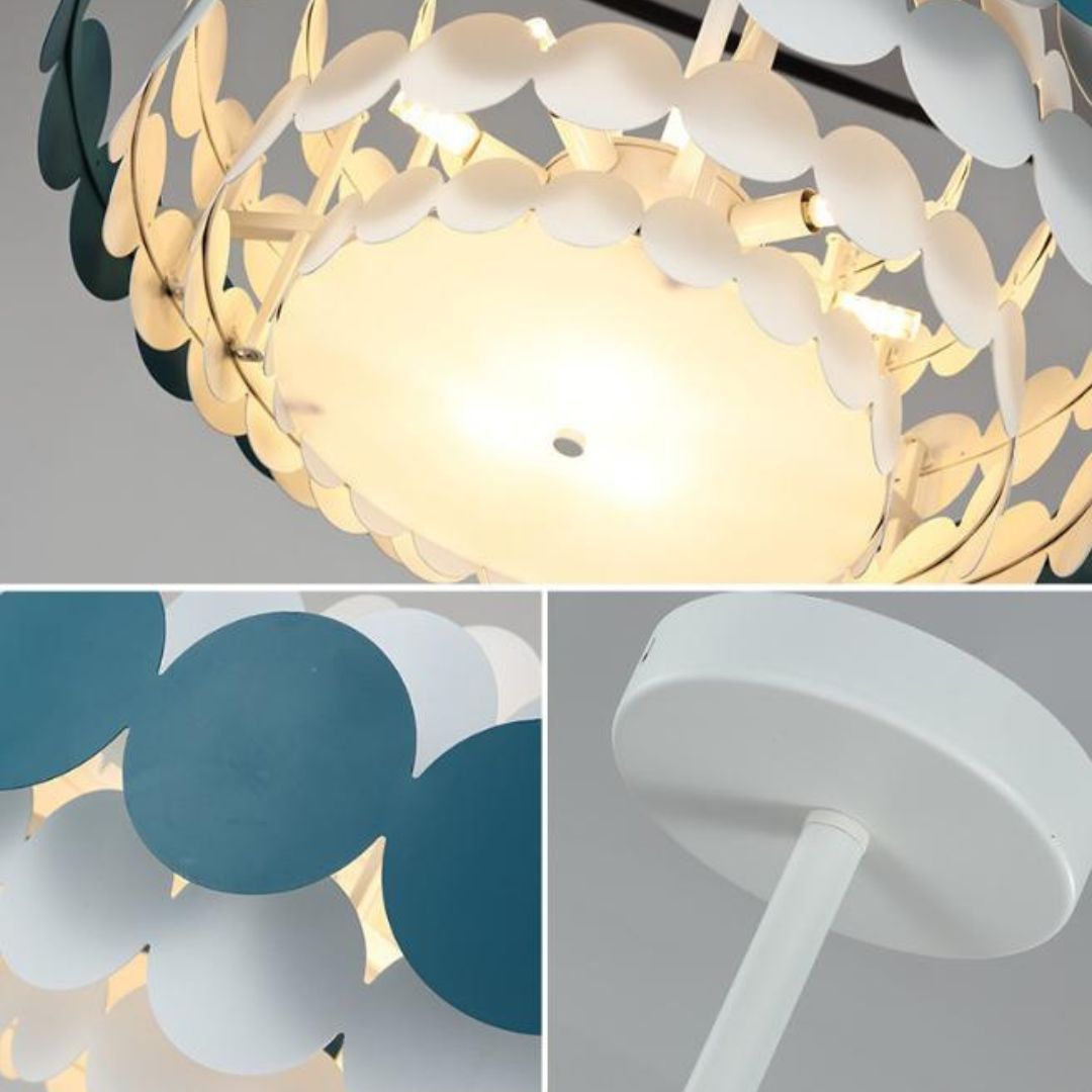 Không dừng lại ở hình dáng, sự phối màu giữa các lớp vảy cũng mang đến hiệu ứng thị giác đặc biệt. Tông màu trung tính kết hợp với điểm nhấn xanh nhẹ tạo nên cảm giác vừa hiện đại, vừa thư giãn. Khi ánh sáng chiếu qua các lớp kim loại, từng chi tiết trở nên sống động, giúp chiếc đèn trở thành tâm điểm nổi bật trong bất kỳ không gian nào.