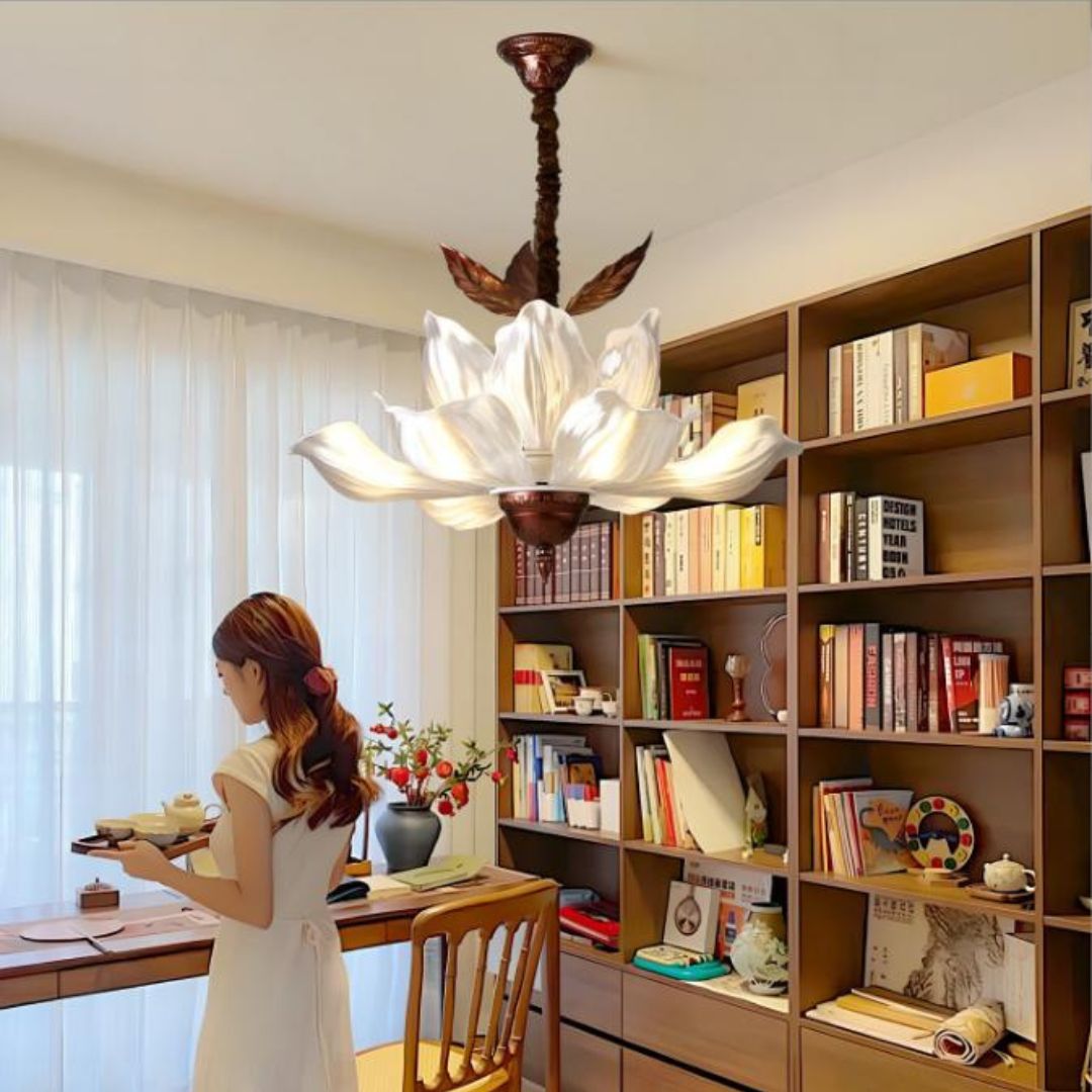 Đèn thả trần hoa cánh xếp dễ dàng kết hợp với nhiều phong cách nội thất khác nhau. Trong không gian tân cổ điển, đèn đóng vai trò làm mềm các đường nét kiến trúc, tăng thêm sự sang trọng. Với phong cách hiện đại, đèn trở thành điểm nhấn nghệ thuật nổi bật. Màu sắc nhẹ nhàng cùng ánh sáng linh hoạt giúp mẫu đèn này phù hợp cả với không gian nhà ở, căn hộ cao cấp lẫn khách sạn, showroom hoặc spa. Đây là sản phẩm decor mang tính ứng dụng cao và giá trị thẩm mỹ lâu dài.