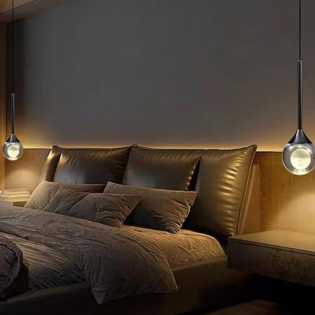 Mẫu đèn thả trần quả cầu pha lê trong hình giống như một khối ánh sáng được gói gọn trong lớp vỏ pha lê mịn màng. Khi ánh đèn được thắp sáng, lõi sáng tròn bên trong phát ra ánh sáng đều và mềm, lan tỏa khắp không gian. Đó là thứ ánh sáng không gây chói, nhưng đủ để làm nổi bật chiều sâu và sự tinh tế của toàn bộ căn phòng.