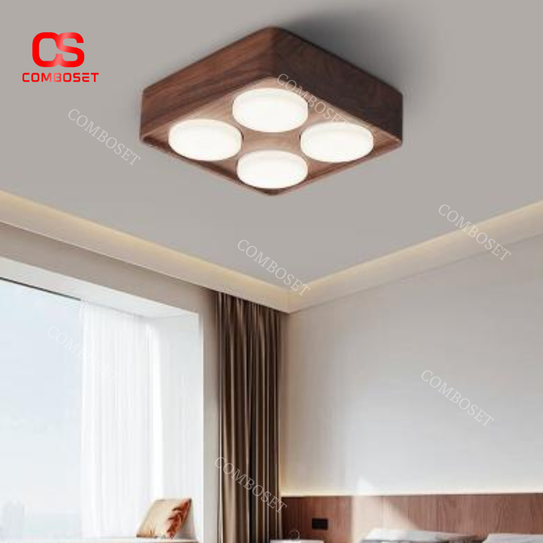 Đèn Trần Gỗ Óc Chó Hình Hộp Đèn Downlight Trần Nhà Chiếu Sáng Lối Đi Hành Lang