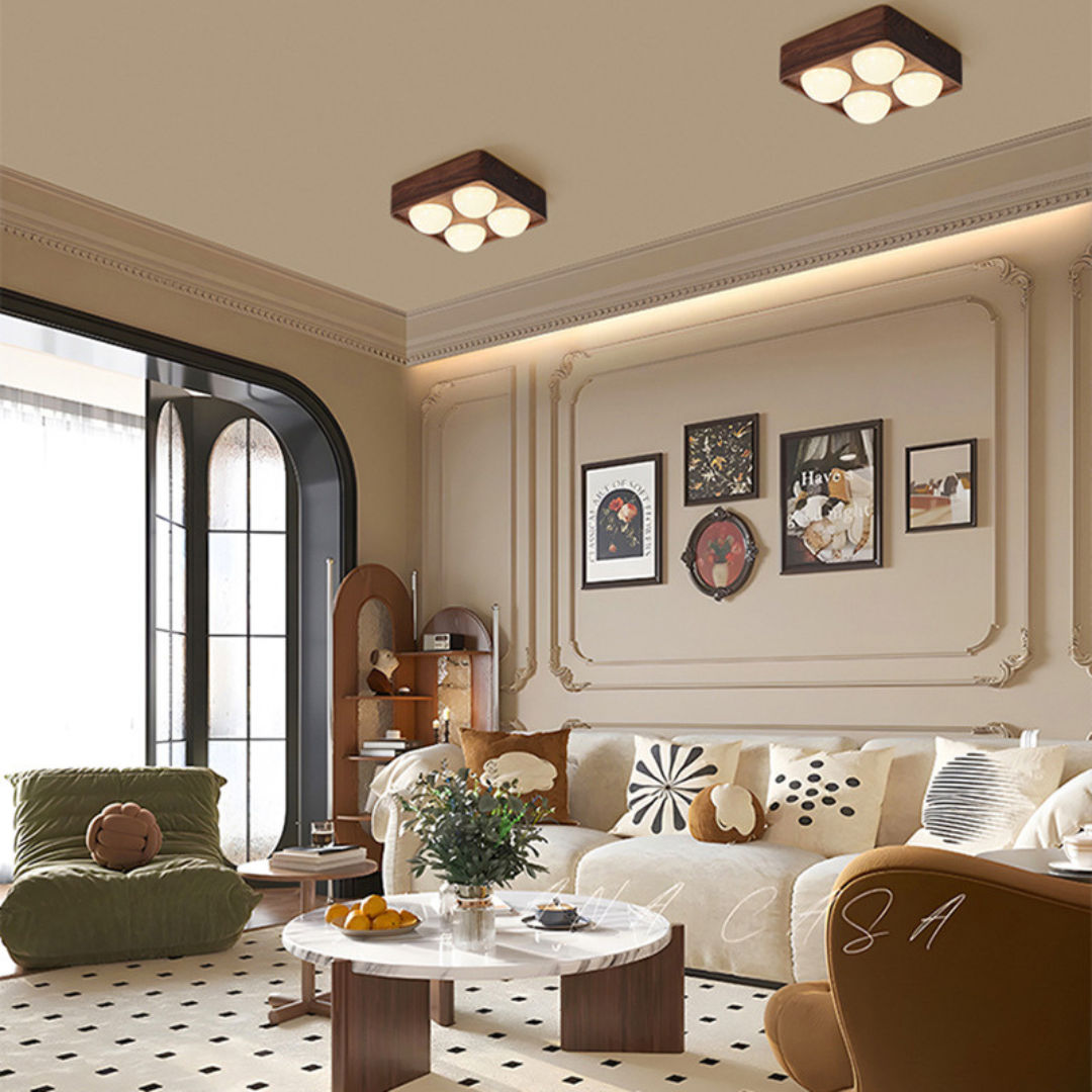 Đèn trần gỗ óc chó hình hộp sở hữu thiết kế hình hộp đơn giản nhưng tinh tế, phù hợp với nhiều phong cách nội thất khác nhau. Hình dáng hộp giúp ánh sáng được phân bố đều và hiệu quả, đồng thời tạo điểm nhấn nổi bật cho trần nhà. Thiết kế này không chỉ làm nổi bật lối đi hành lang mà còn mang lại sự sang trọng cho các khu vực khác trong ngôi nhà.