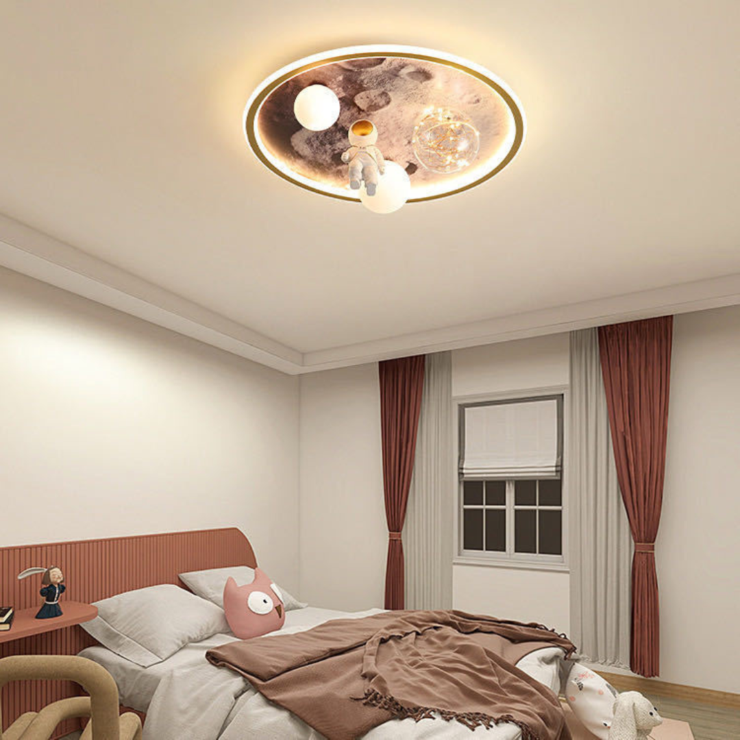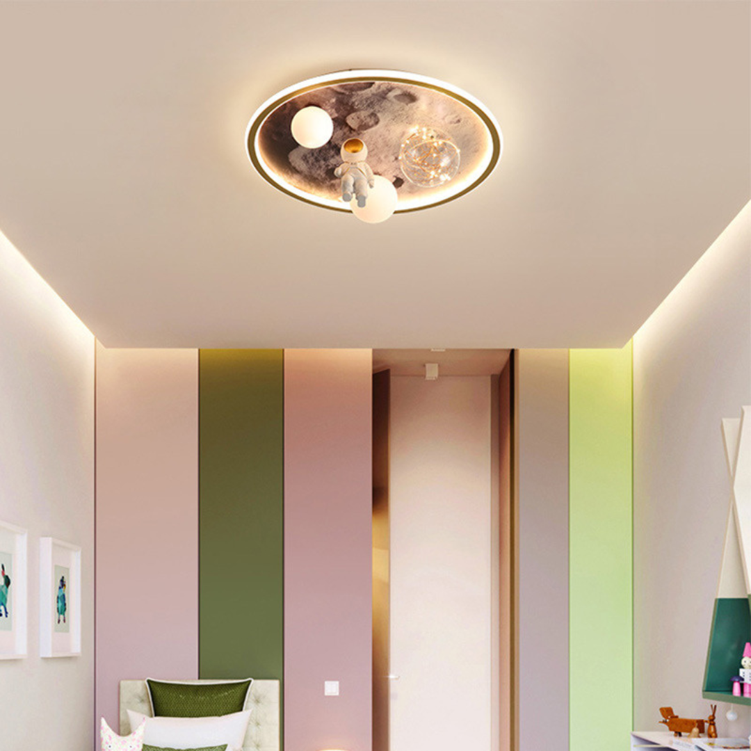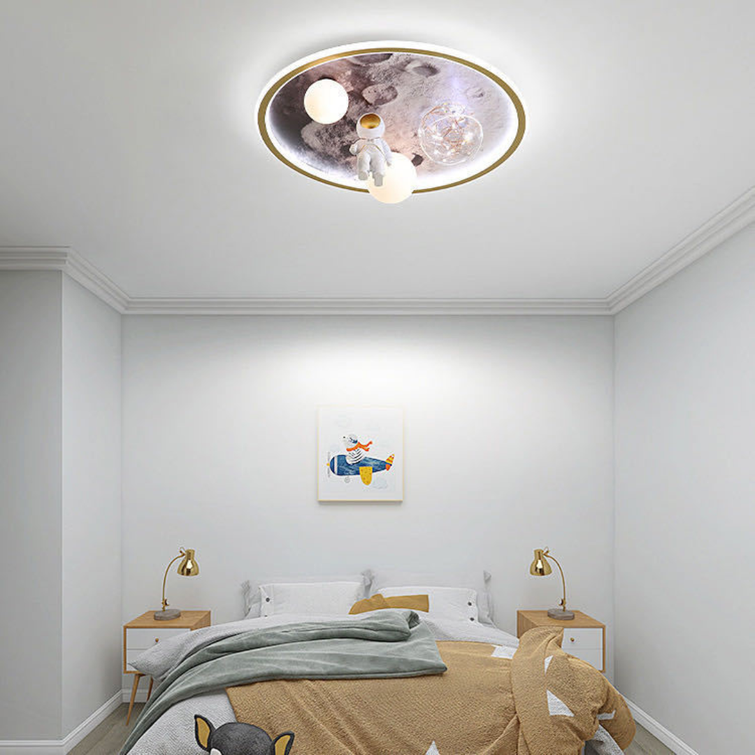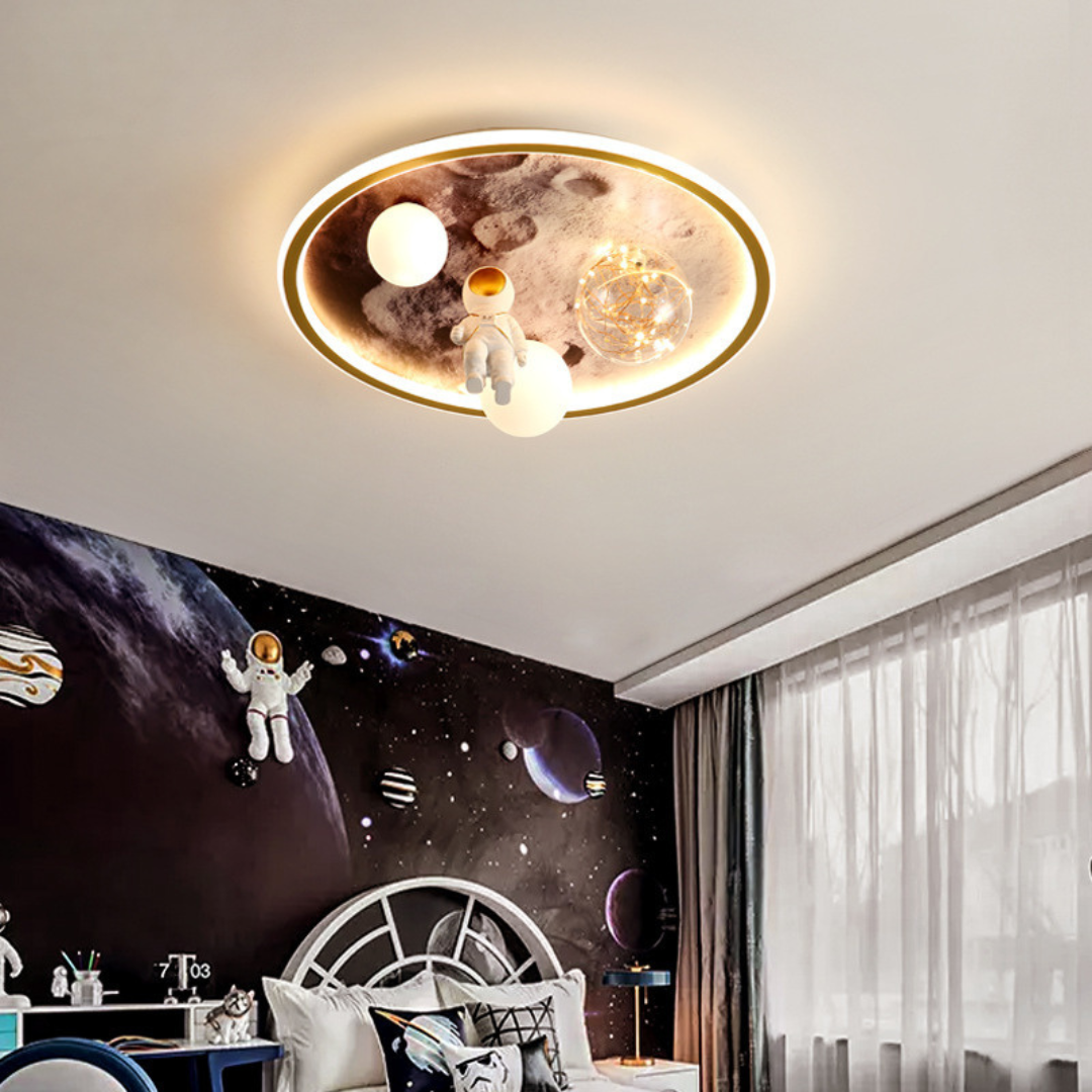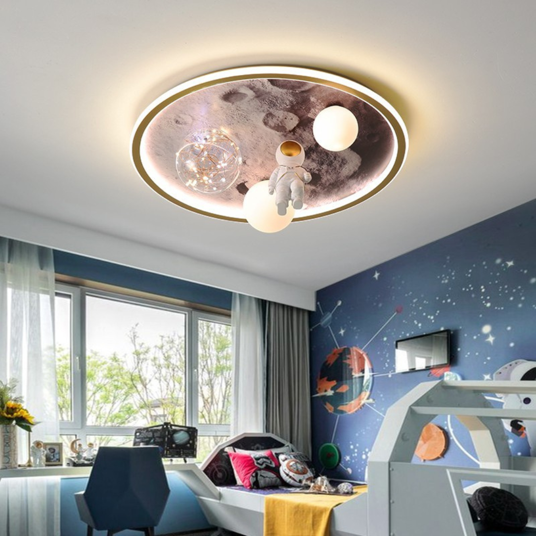Khi trang trí phòng cho bé, đèn trần phi hành gia khí quyển với thiết kế độc đáo và ánh sáng tuyệt vời là lựa chọn lý tưởng. Nó không chỉ tạo điểm nhấn cho phòng mà còn mang đến không gian khám phá đầy cảm hứng cho bé.
