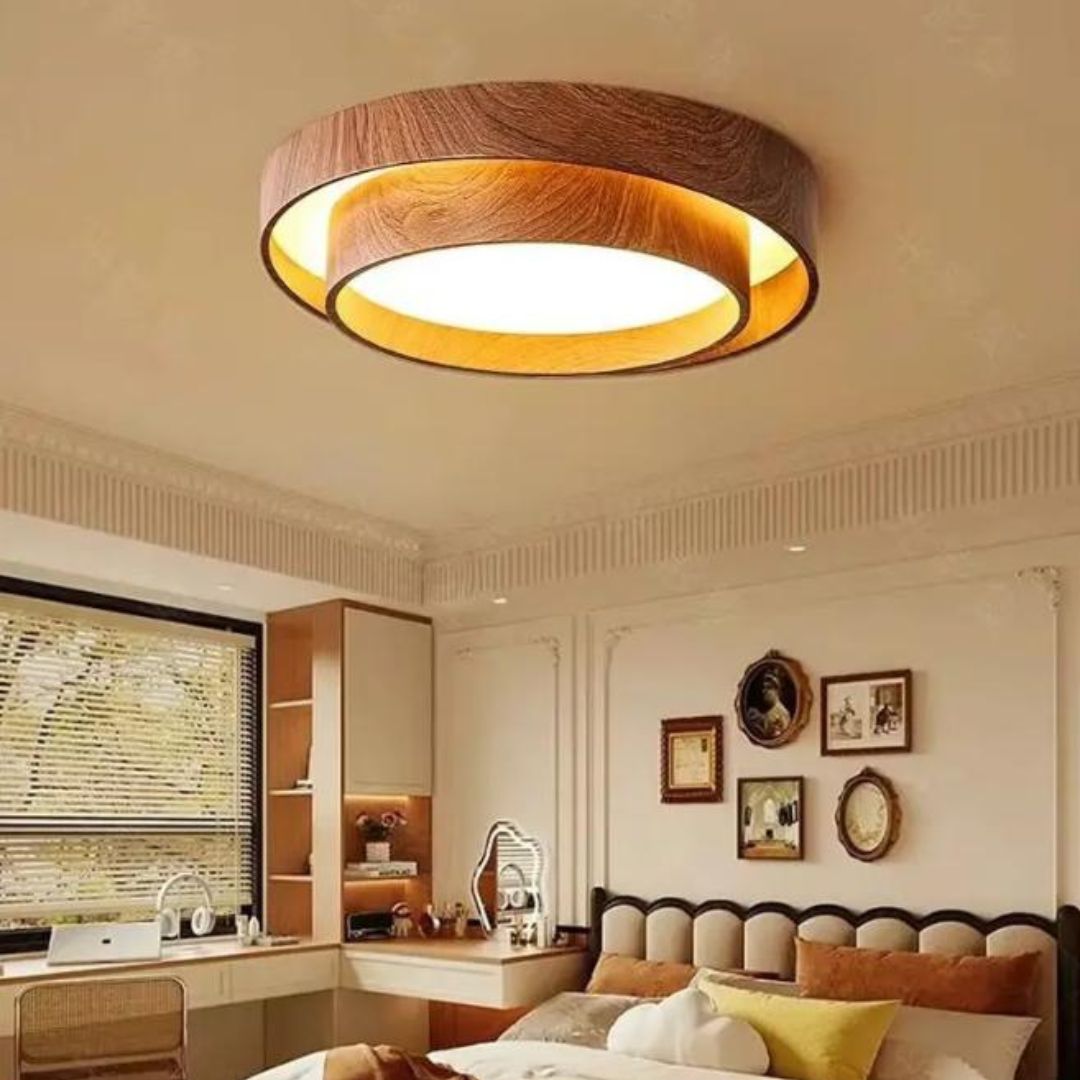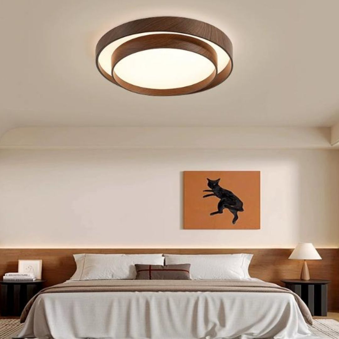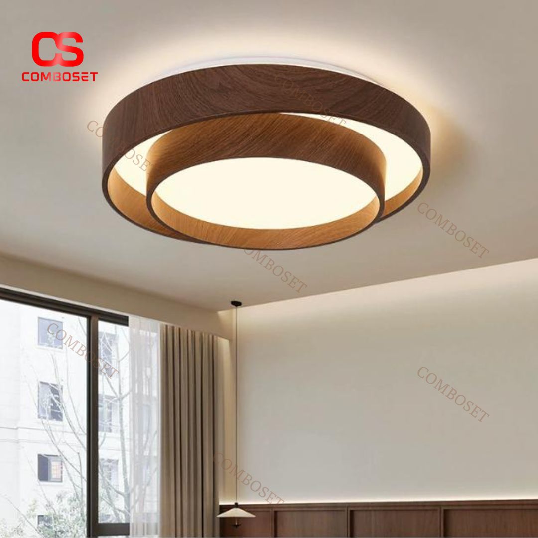 Phòng ngủ là nơi cần sự êm dịu, thư giãn và cảm giác an toàn – điều mà mẫu đèn trần tròn viền sắt vân gỗ đáp ứng một cách hoàn hảo. Thiết kế tròn đầy mang biểu tượng của sự viên mãn, cùng với ánh sáng ấm hoặc trung tính, giúp tạo ra bầu không khí lý tưởng cho giấc ngủ sâu. Bạn có thể chọn ánh sáng trắng để đọc sách trước khi ngủ hoặc chuyển sang ánh sáng vàng để thư giãn, tất cả chỉ với thao tác đơn giản từ công tắc hay điều khiển.