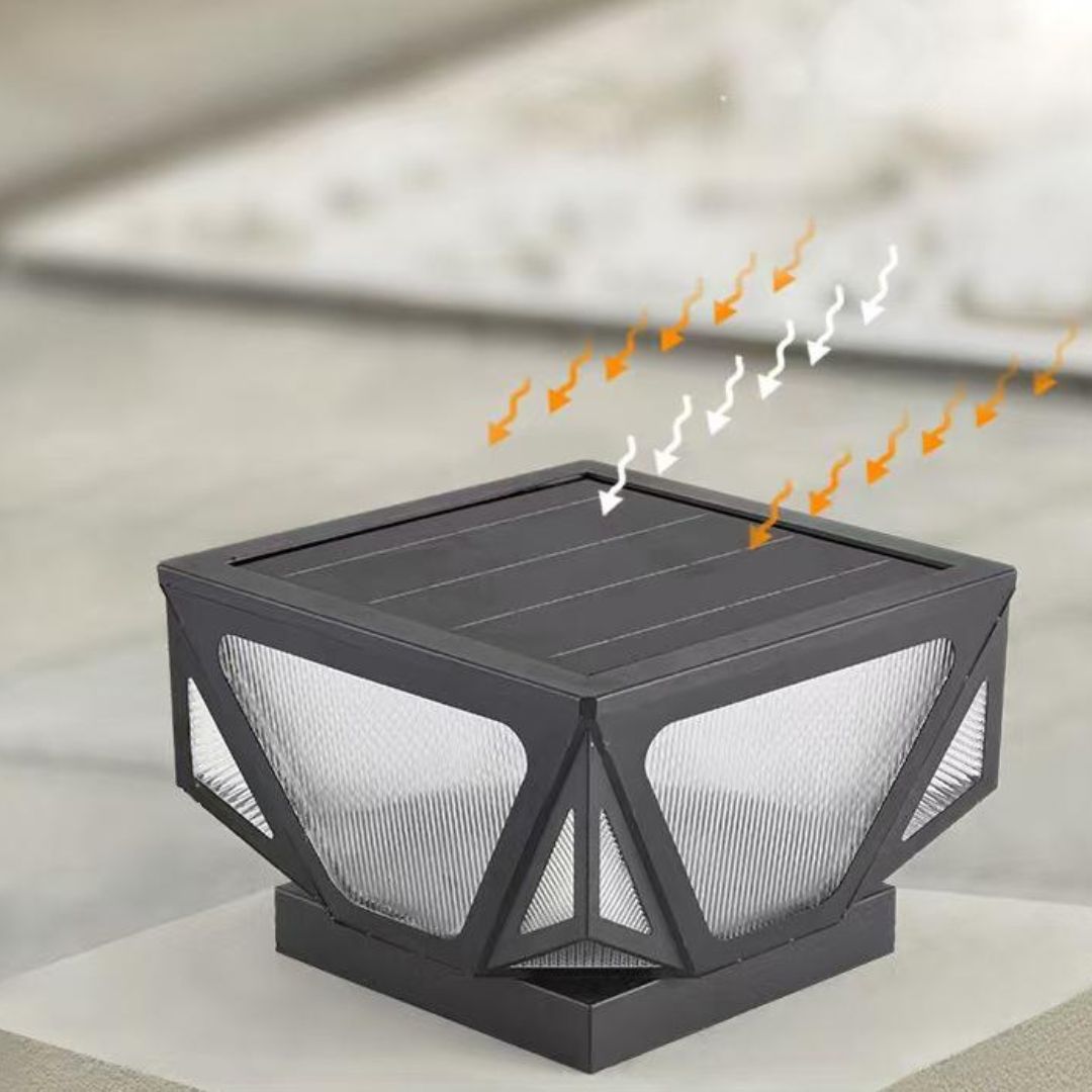 > Đèn Trụ Cột Hàng Rào Vuông Đen Mờ Năng Lượng Mặt Trời 4 Chế Độ Màu Sáng