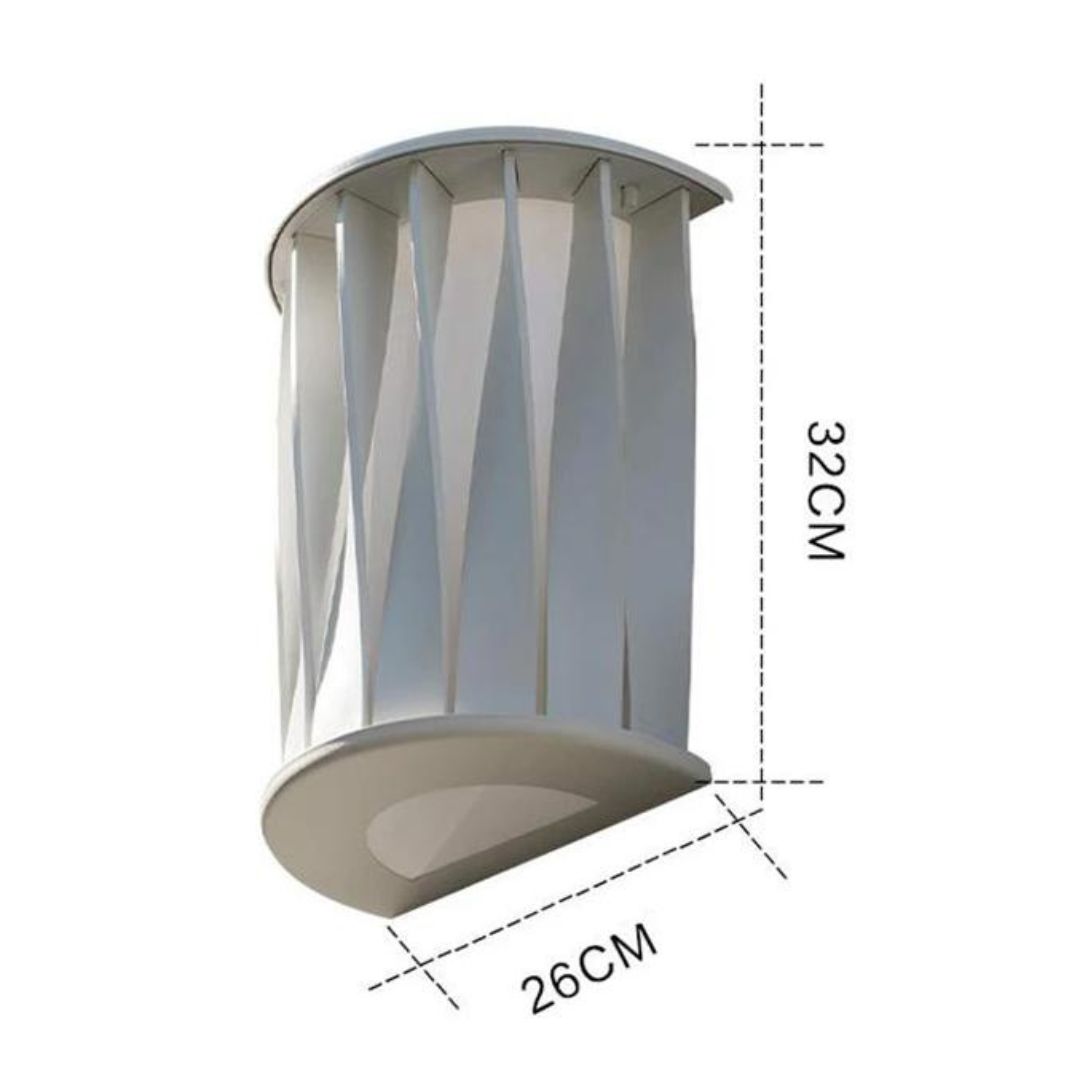 Mẫu đèn tường cánh hắt sáng trong hình sở hữu thiết kế hình trụ đứng gọn gàng, các cánh kim loại được bố trí dọc thân đèn với khoảng hở đều nhau. Khi ánh sáng phát ra từ bên trong, các khe hở này tạo nên những dải sáng – tối đan xen đầy nghệ thuật. Thiết kế không quá cầu kỳ nhưng đủ tinh xảo để trở thành điểm nhấn trang trí cho mảng tường ngoại thất hoặc nội thất.
