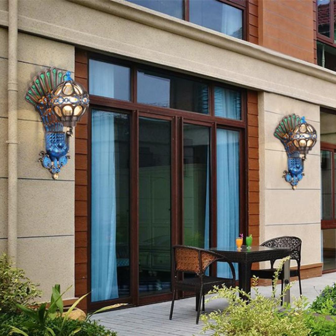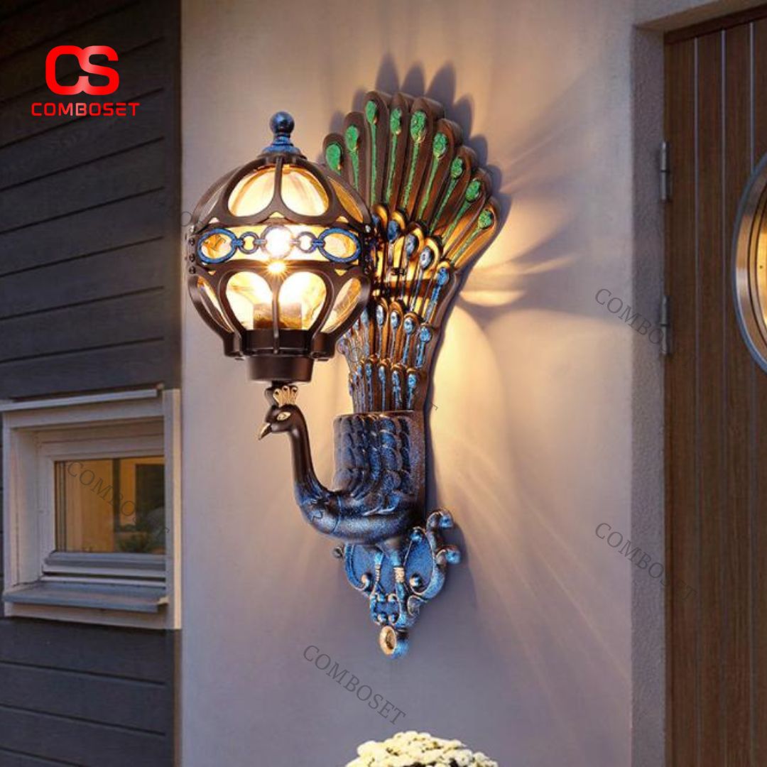 Khi được lắp đặt trên tường ngoại thất, ánh sáng vàng từ đèn tạo nên bầu không khí sang trọng, ấm cúng và đầy tính nghệ thuật. Đây là lựa chọn lý tưởng cho những gia chủ mong muốn không gian sống vừa lung linh, vừa thể hiện đẳng cấp thông qua đèn tường chim công.